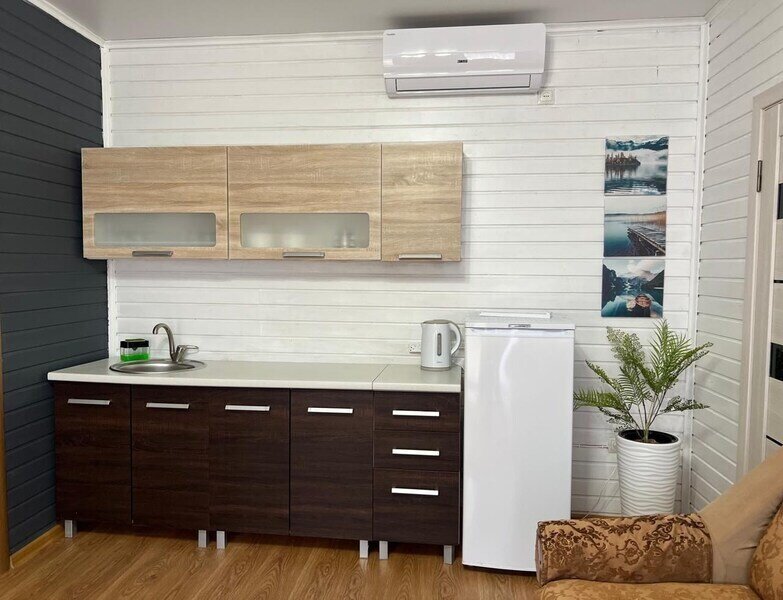 Для гостей подготовлены уютные домики, оснащенные всем необходимым для проживания. В каждом установлен кондиционер и телевизор. Спальные места представлены кроватями или удобными раскладными диванами. А собственная ванная комната оборудована стандартным набором сантехники.