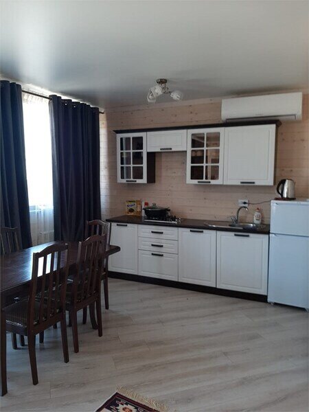 Две спальни оборудованы большими двуспальными кроватями. В гостиной раскладной диван и обеденная зона. Полностью оборудованная кухня. Холодильник, плита, кондиционер, зона барбекю, беседка.