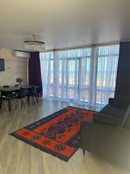 В спальне 2 односпальные кровати. Полностью оборудованная кухня. Холодильник, кондиционер, плита. Раскладной диван и столовая зона.