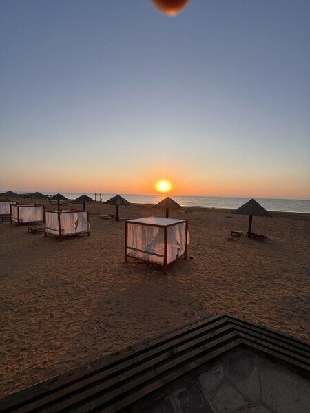 Семейный отдыхДостоинстваРекомендую! Очень понравился пляж, чистый, и что немаловажно просторный. Места всем хватает. Домики комфортные, приятный персонал. Думаю, приедем еще раз.