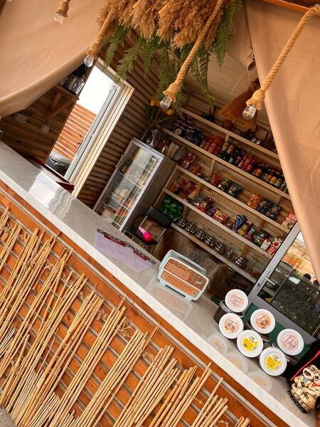 В домиках имеется кухня с бытовой техникой. Помимо этого, на территории базы работает кафе, а в шаговой доступности есть продуктовые магазины.