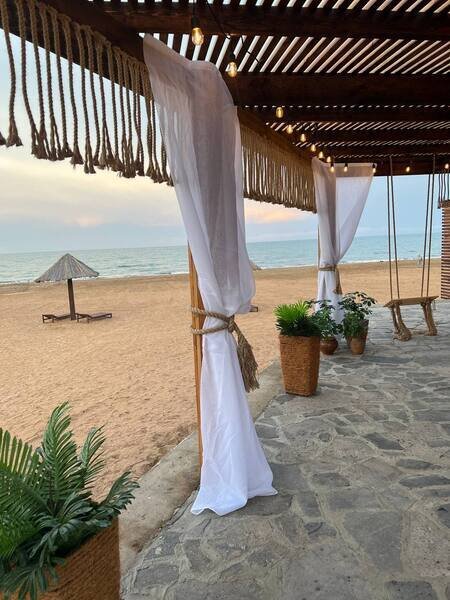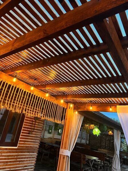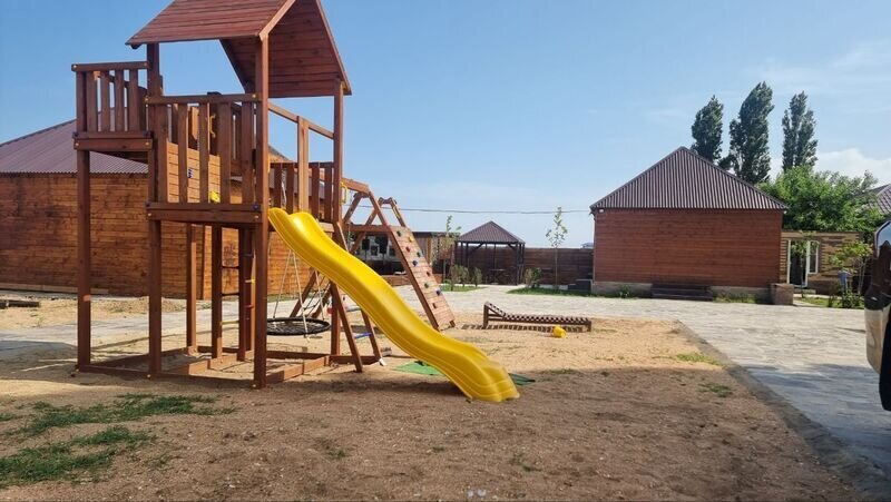 В распоряжении гостей беседки, мангалы и шикарный песчаный пляж с лежаками и зонтиками. Для юных гостей имеется детская площадка. Также есть возможность заказать трансфер.