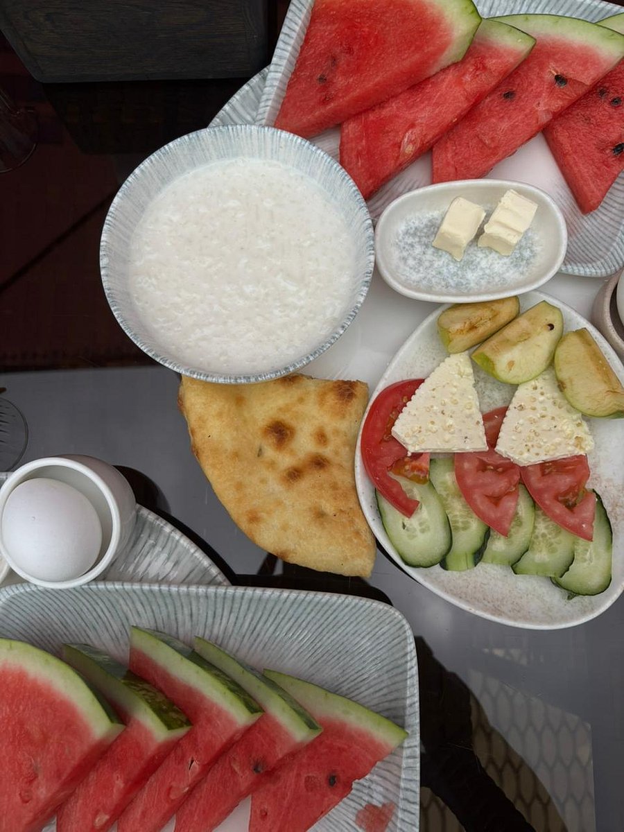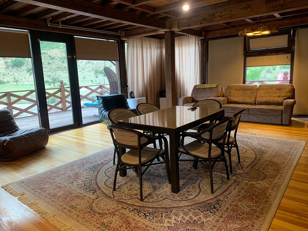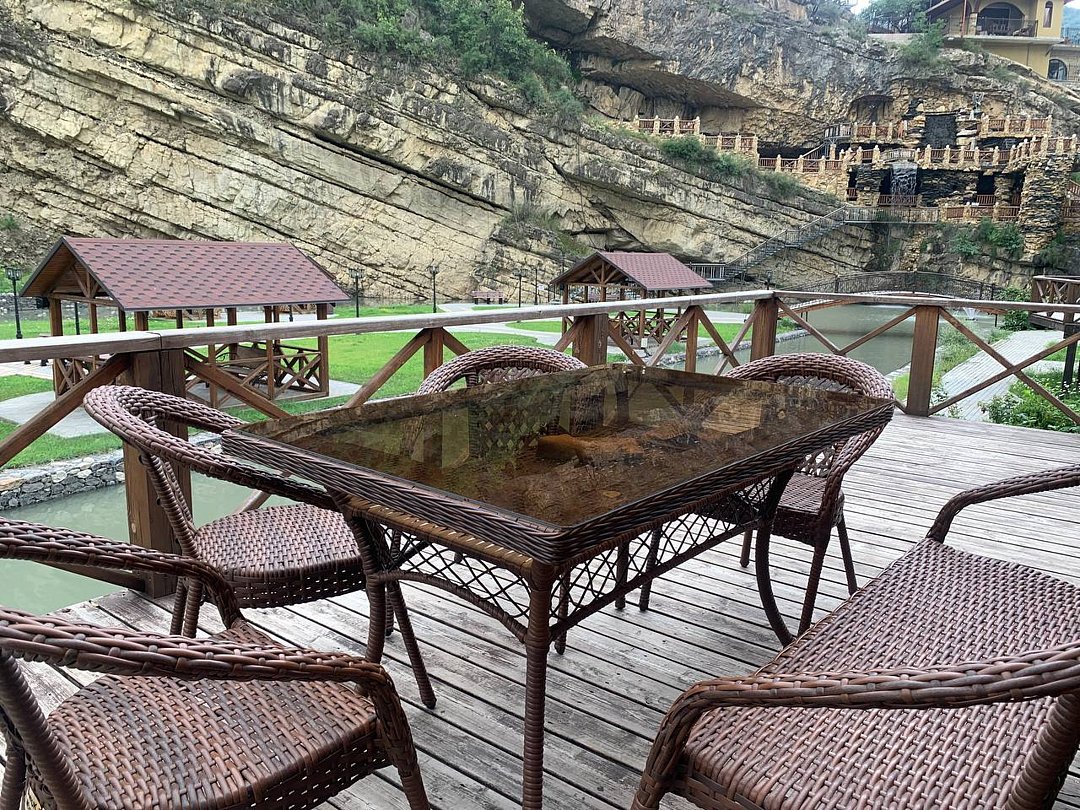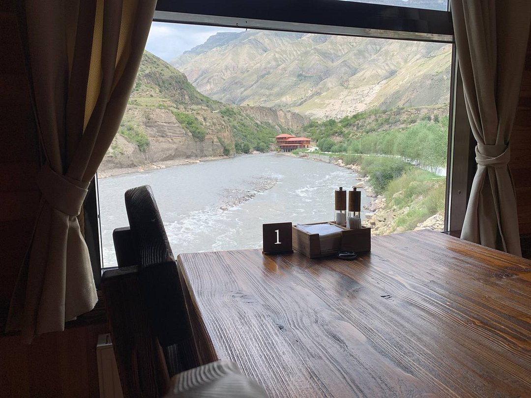 Читать полностьюРесторан горного отеля уютно расположился у реки, предлагая восхитительные виды и мягкое звучание горной воды. Здесь можно насладиться завтраками, обедами и ужинами, выбрав из разнообразного меню, включающего стейки, шашлыки, пасту, пиццы, салаты, десерты и аутентичные дагестанские блюда, такие как чуду, хинкал и курзе.