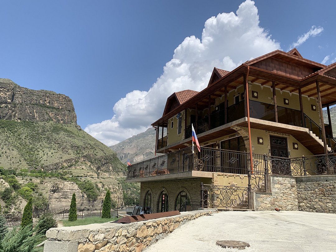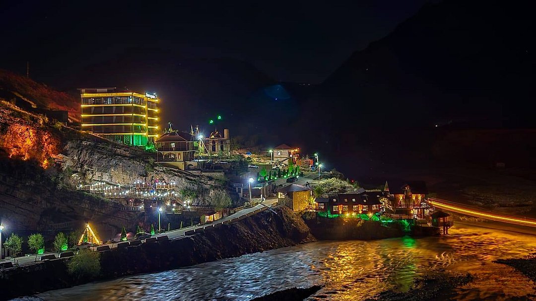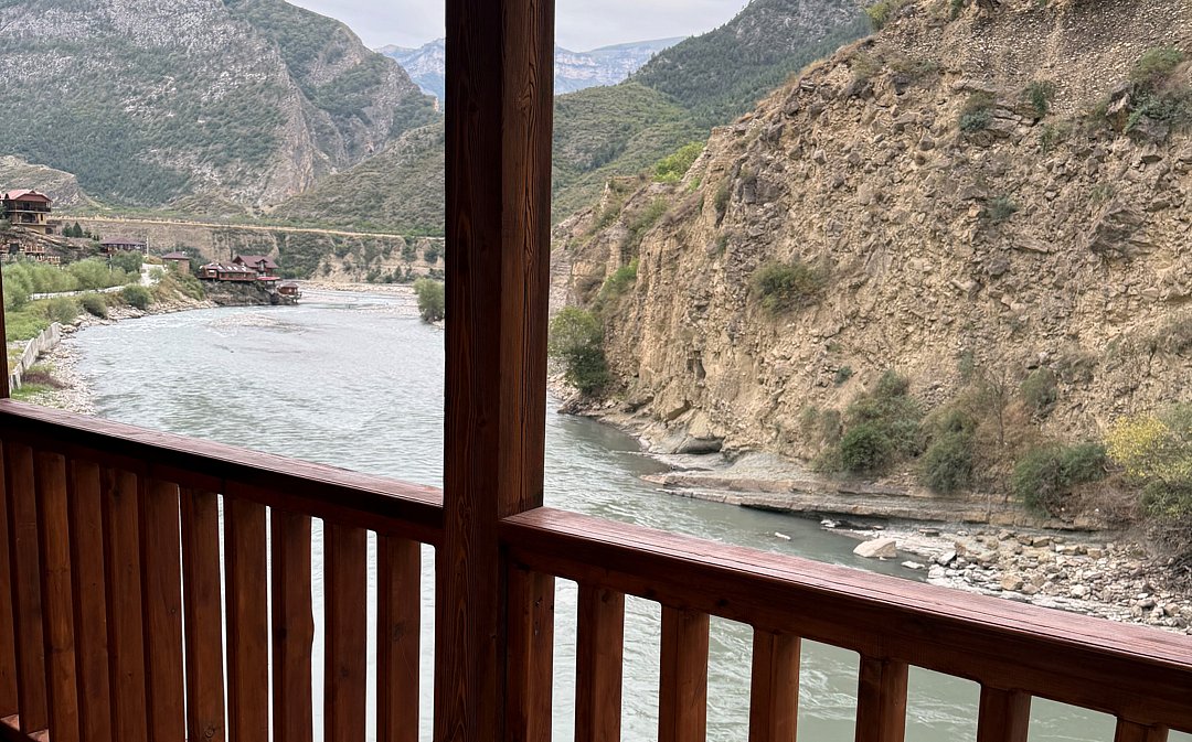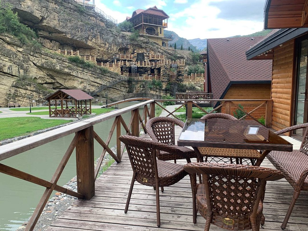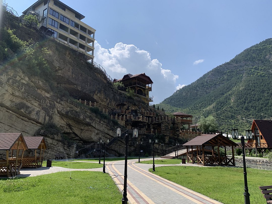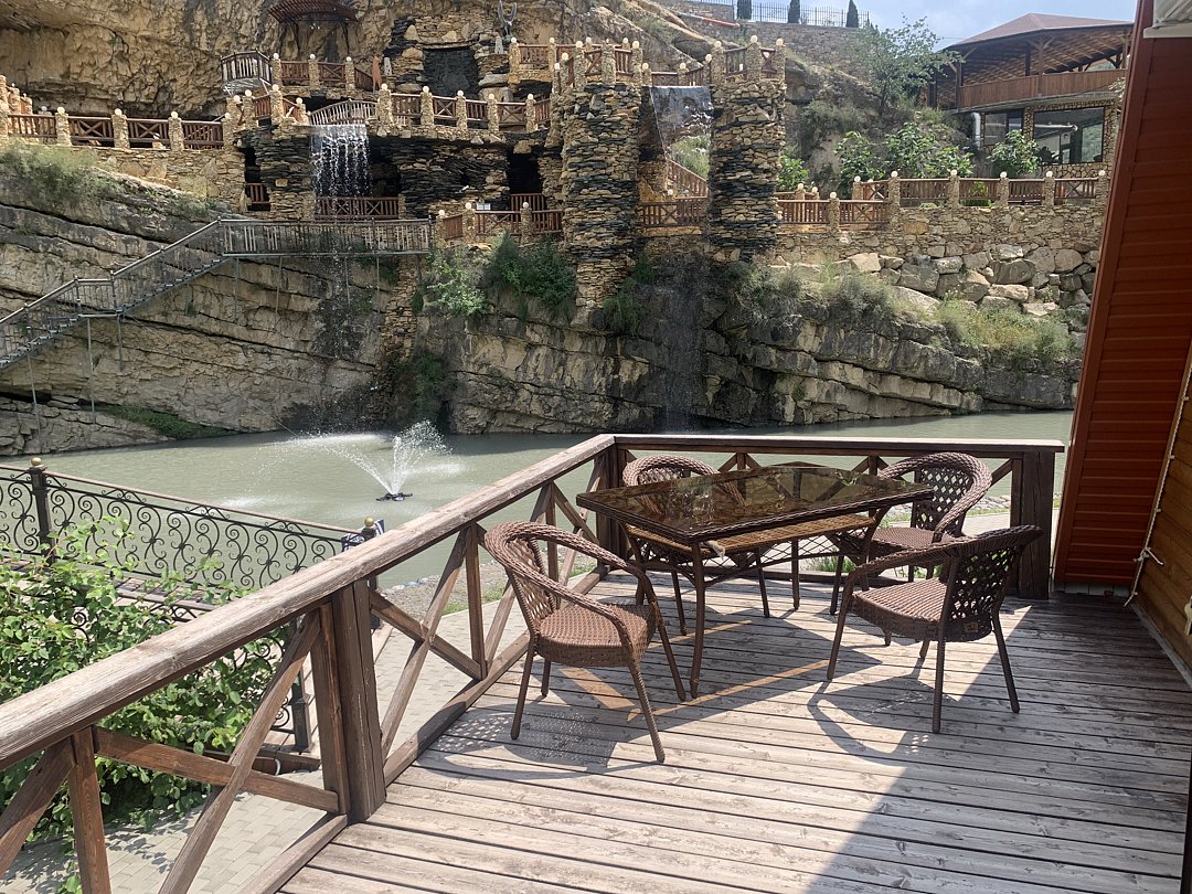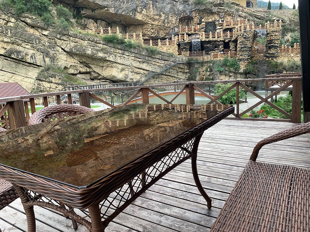 Семейный отдыхДостоинстваОтель замечательный. Прекрасный вид на горы. Сам отель построен в виде замка. Отель стоит на горе. Можно подняться наверх, на самую вершину горы по лестнице. Номера чистые, на полу ковры, есть балкон, из которого открывается красивый вид на горы и реку. При отеле есть ресторан "Панорама", который стоит прямо на реке. Снизу решетчатый пол, где видно быстрое течение реки. Еда в ресторане очень вкусная, есть национальные блюда. Предоставляют бесплатные завтраки, которые очень сытные. Приятно сидеть и созерцать вид на горы, на воду.