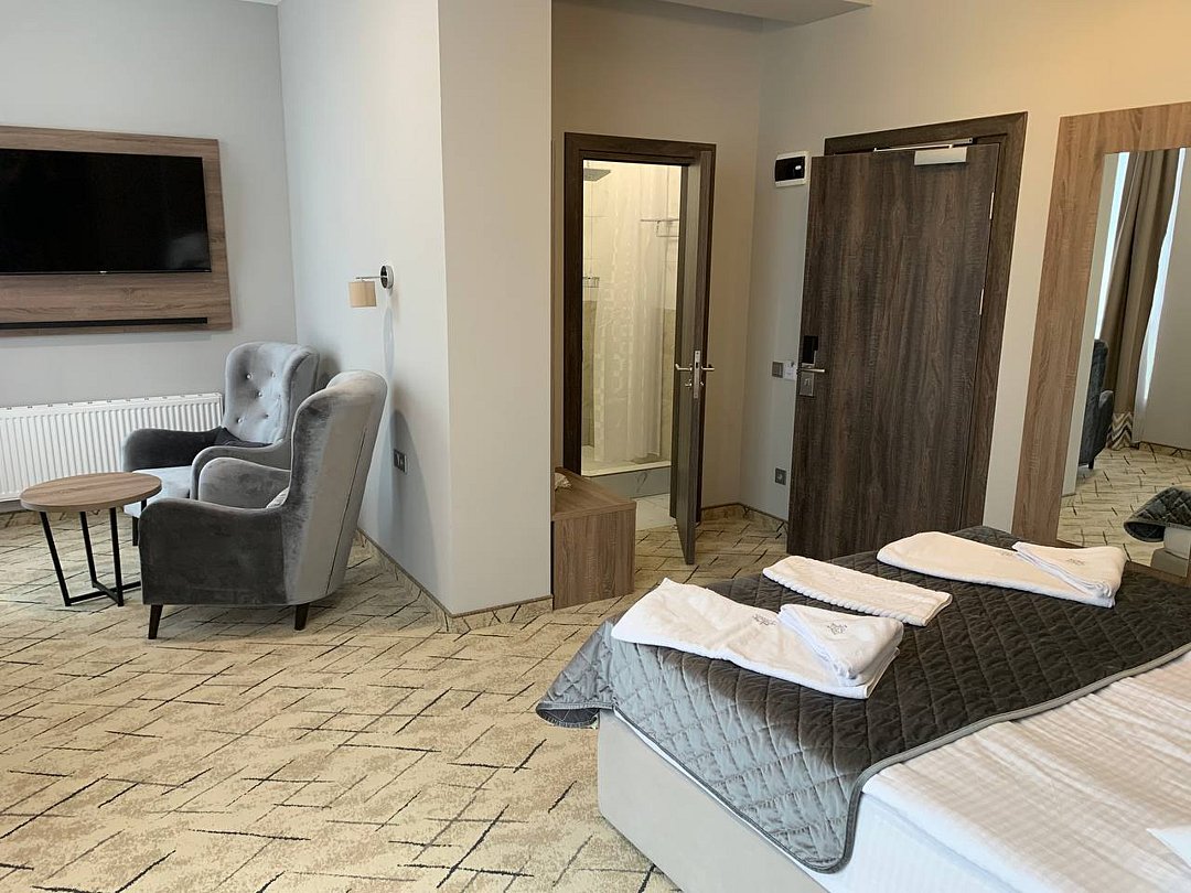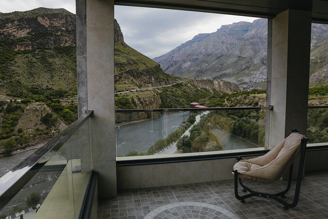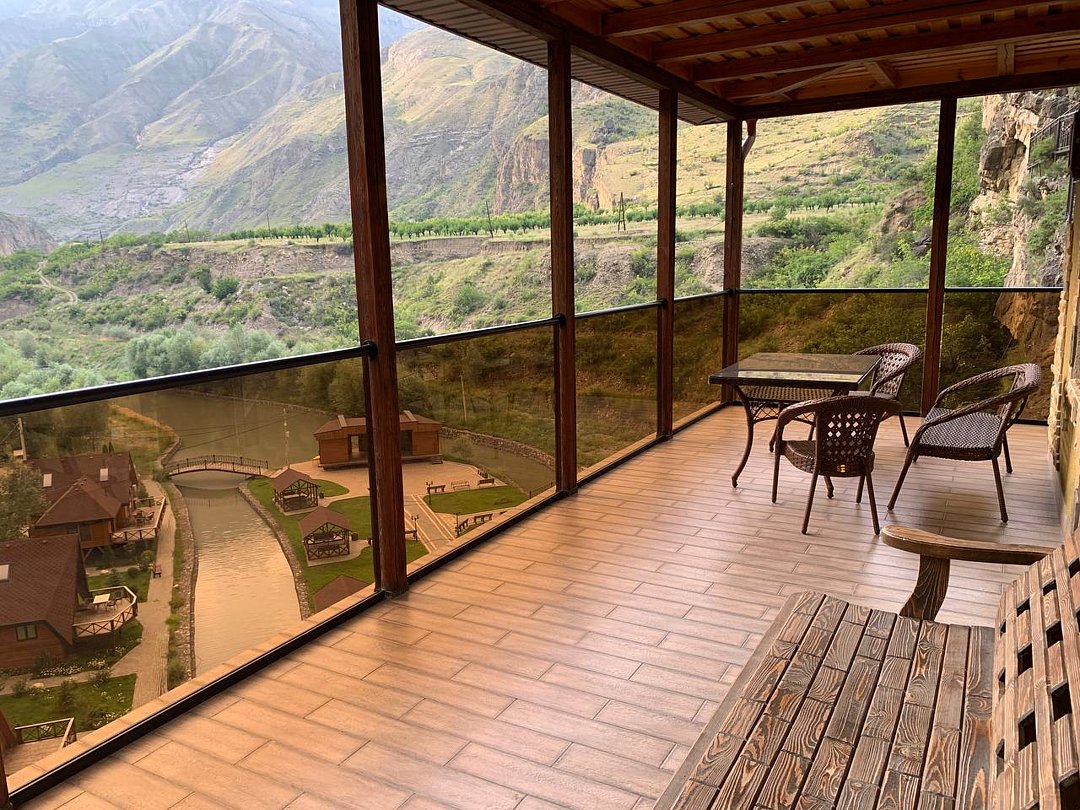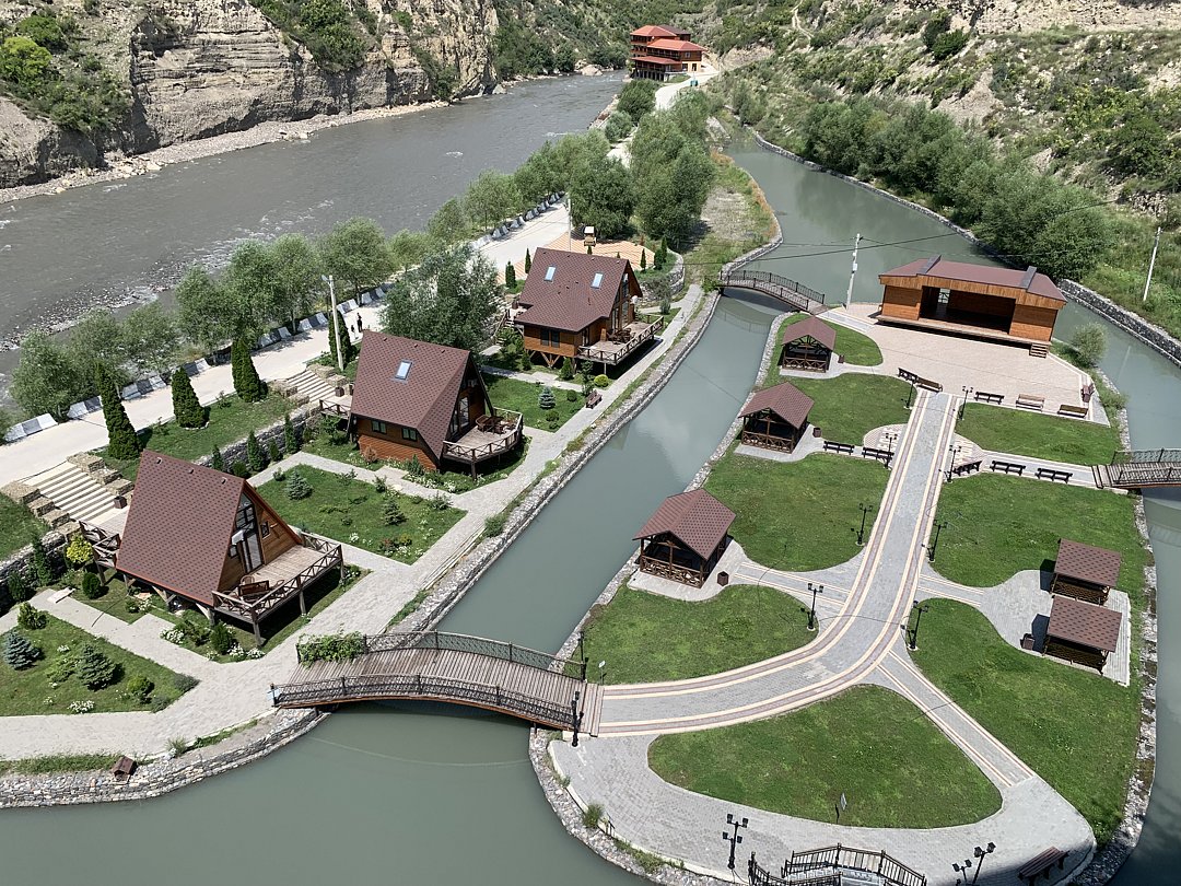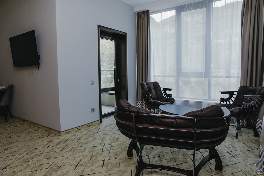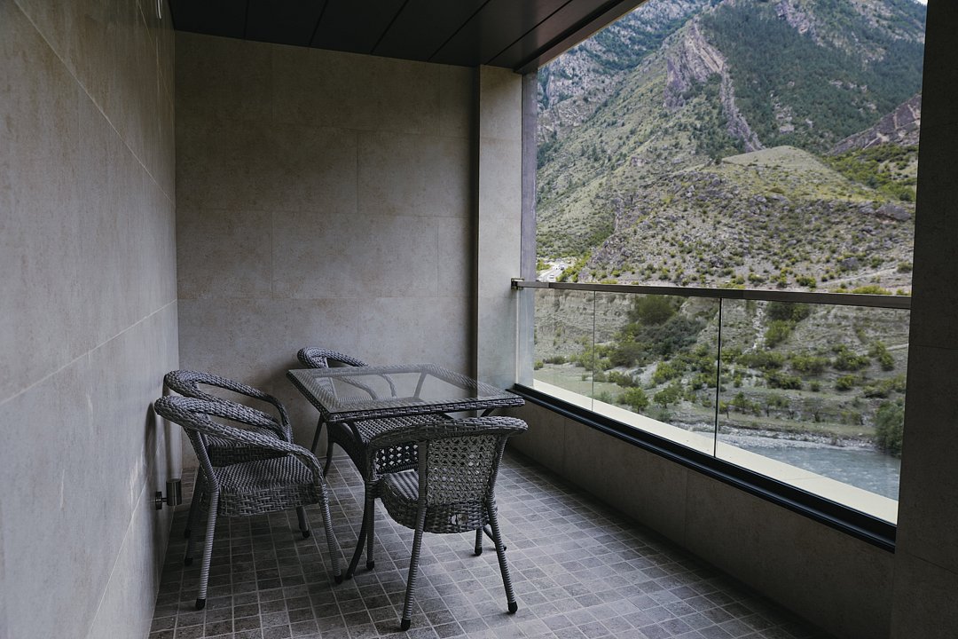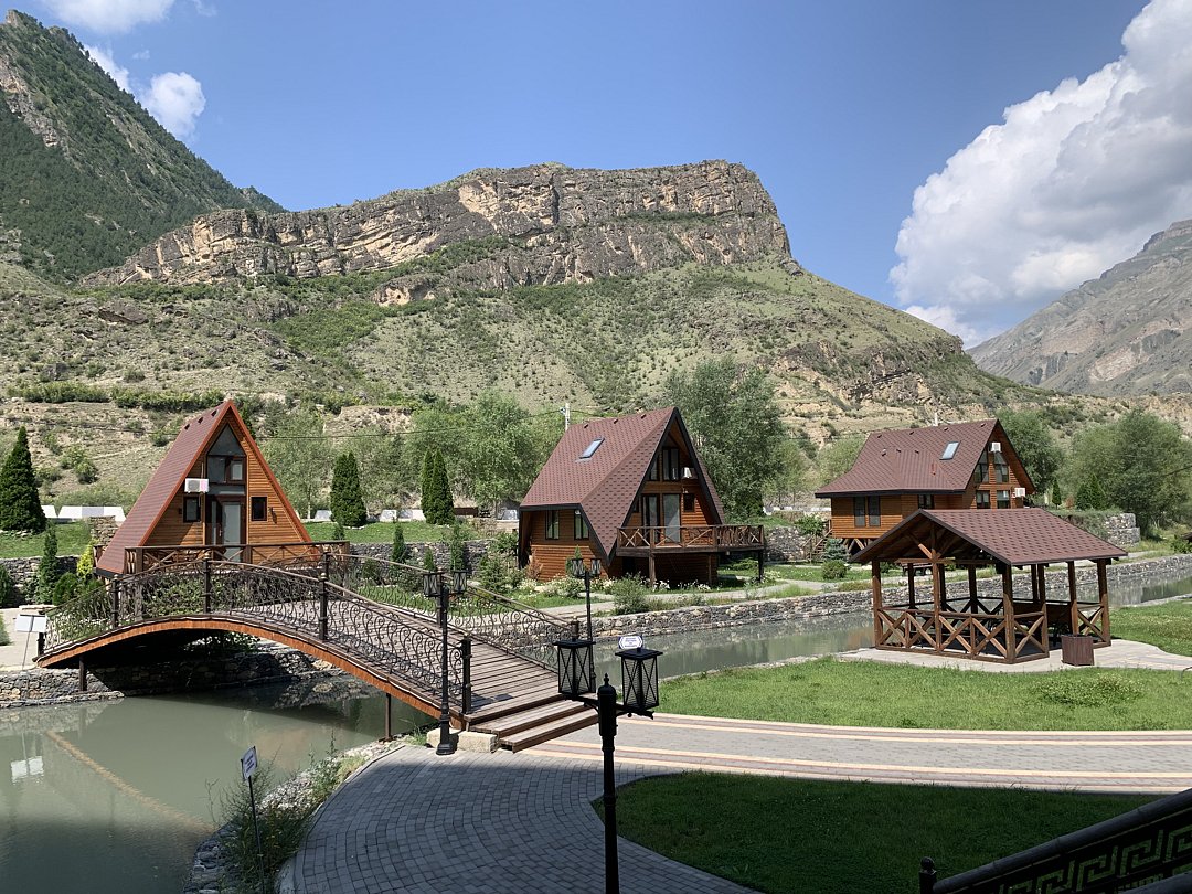Семейный отдыхДостоинстваОтель замечательный. Прекрасный вид на горы. Сам отель построен в виде замка. Отель стоит на горе. Можно подняться наверх, на самую вершину горы по лестнице. Номера чистые, на полу ковры, есть балкон, из которого открывается красивый вид на горы и реку. При отеле есть ресторан "Панорама", который стоит прямо на реке. Снизу решетчатый пол, где видно быстрое течение реки. Еда в ресторане очень вкусная, есть национальные блюда. Предоставляют бесплатные завтраки, которые очень сытные. Приятно сидеть и созерцать вид на горы, на воду.