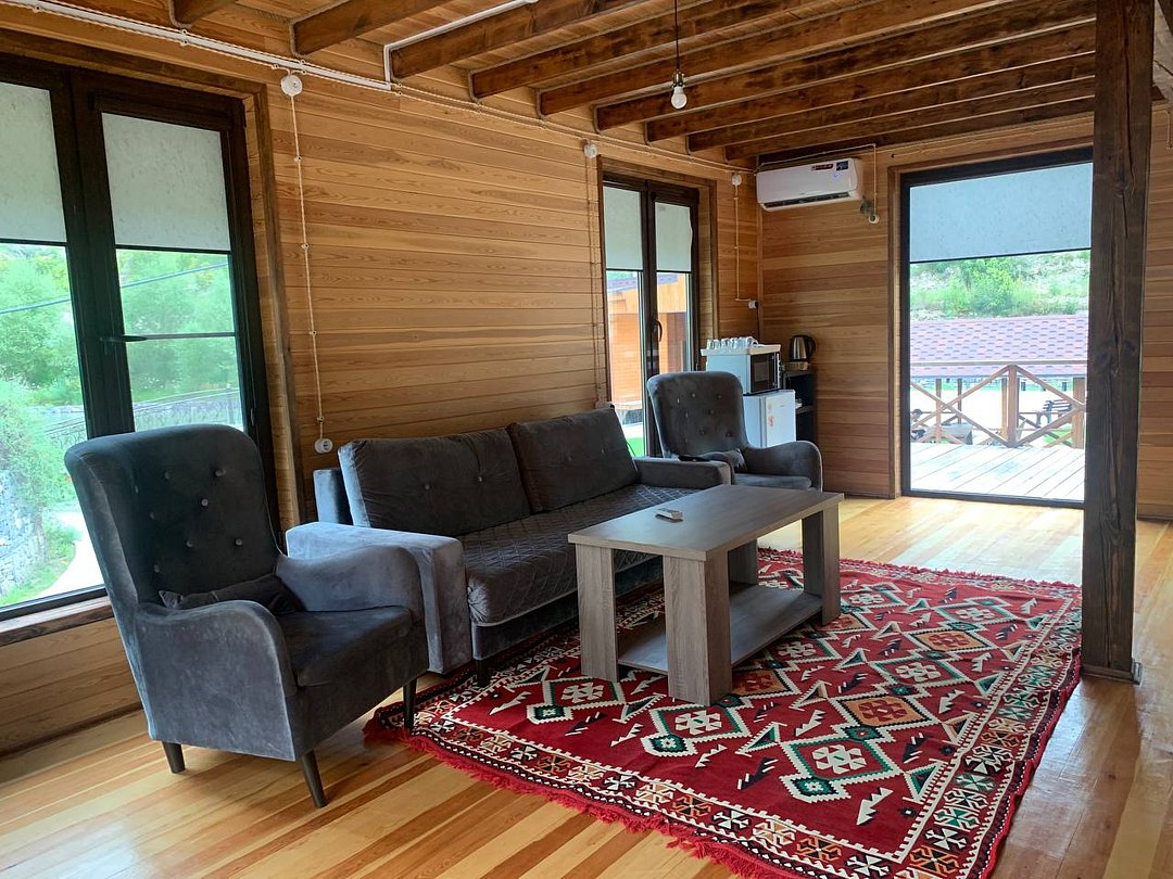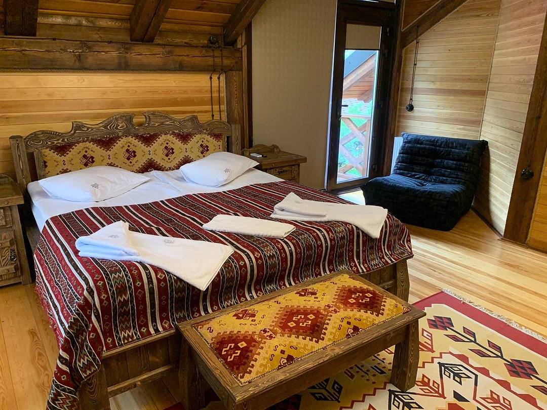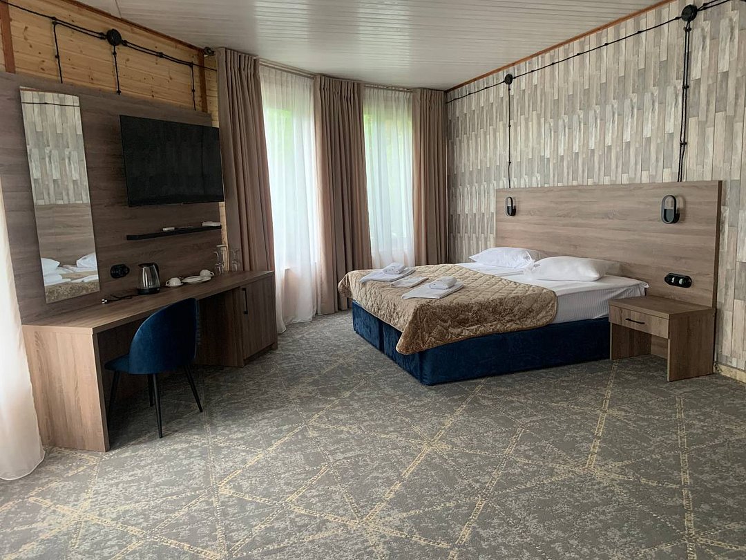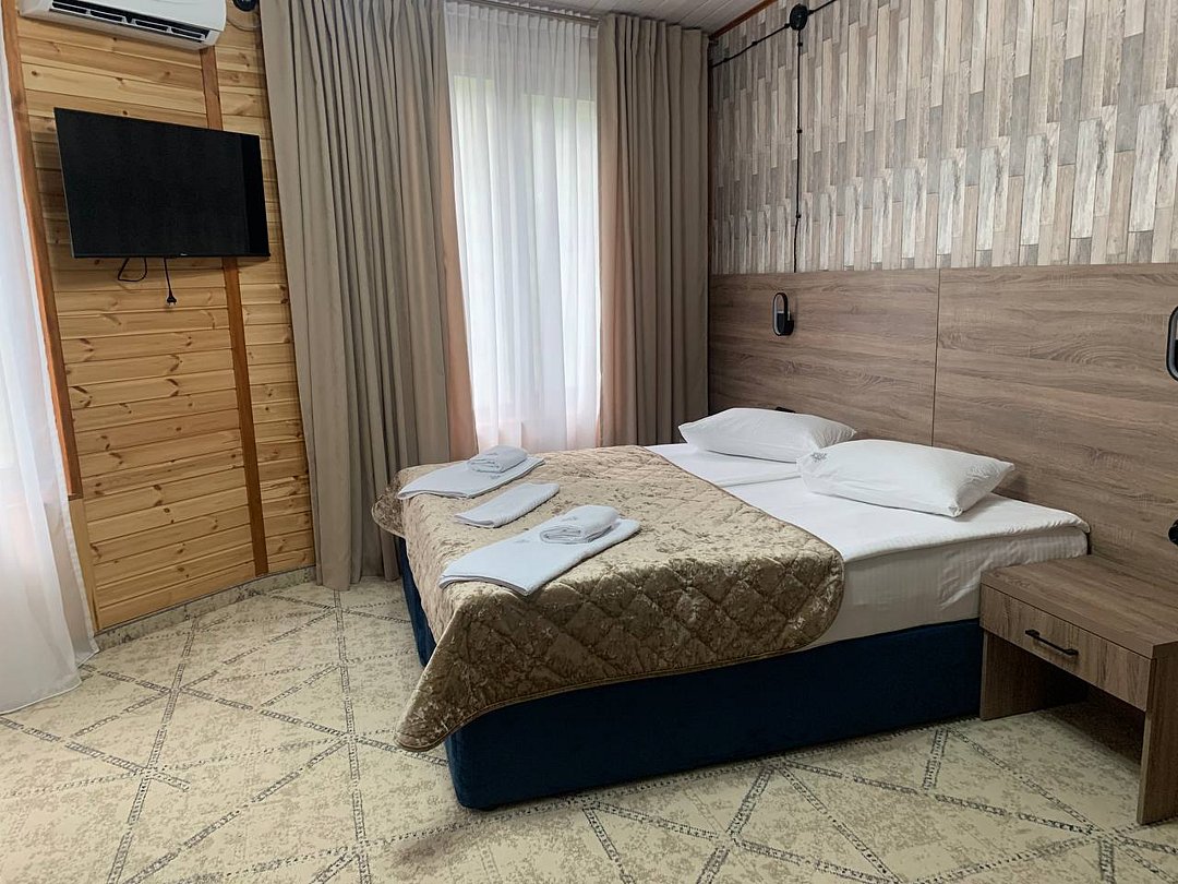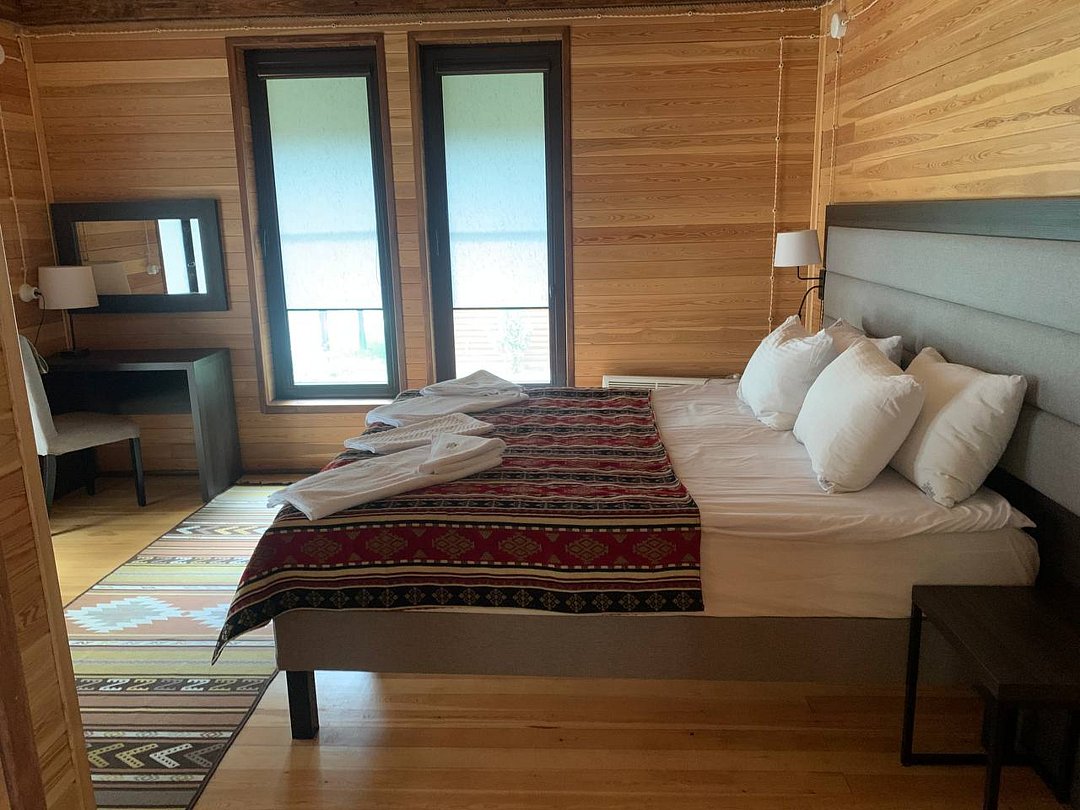 Отель предлагает своим гостям уютные номера и домики различных категорий, оборудованные всем необходимым для комфортного проживания. Современные удобства, такие как бесплатный интернет, кондиционеры и телевизоры, создают идеальные условия для отдыха. Из окон открываются захватывающие виды на горные вершины и бурную реку, чьи звуки сливаются в мелодичный фон, способствующий полному расслаблению.