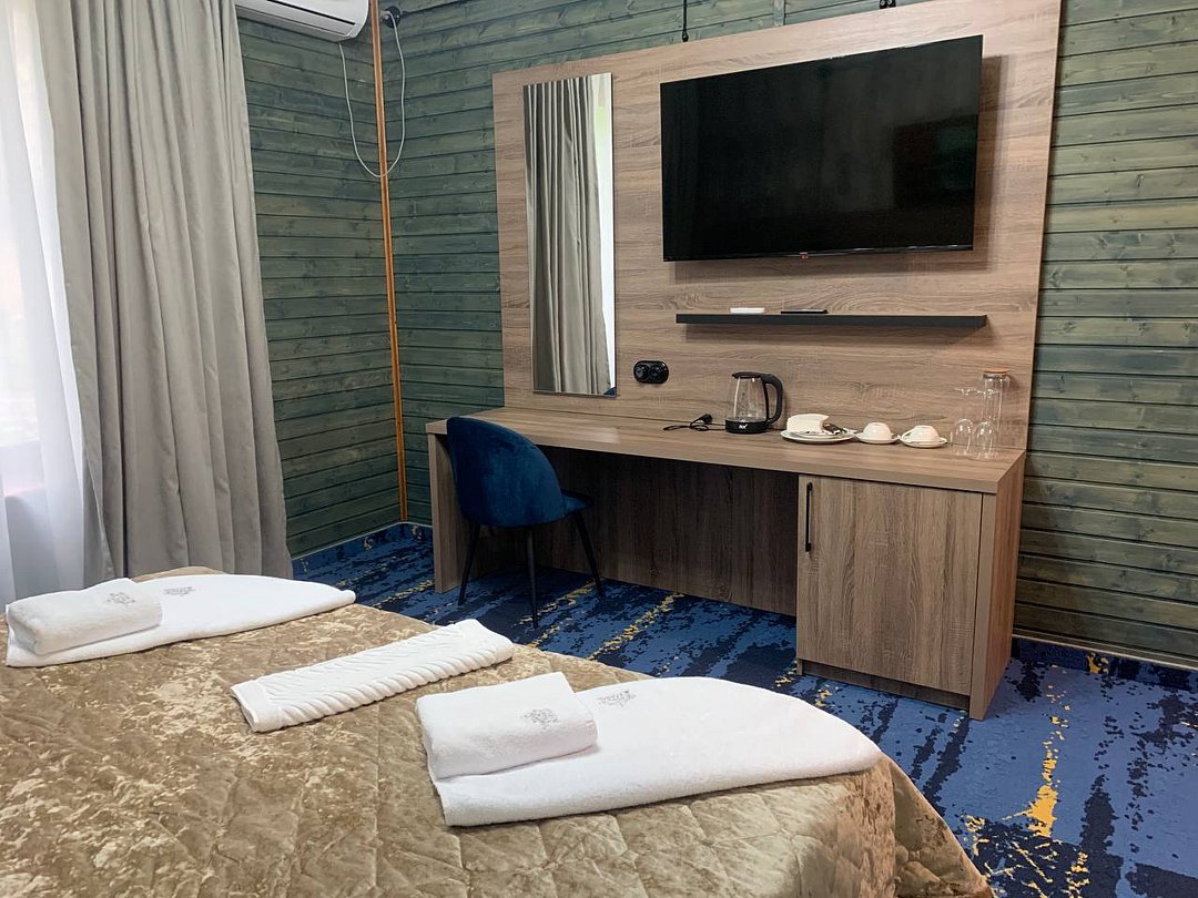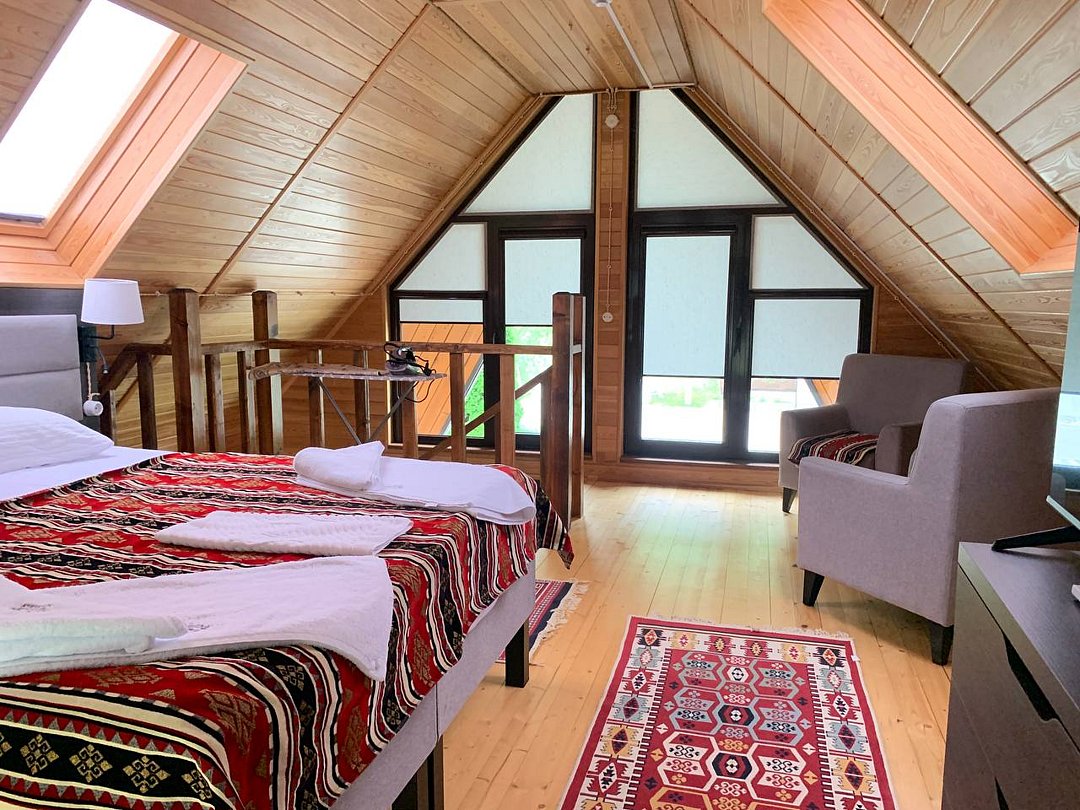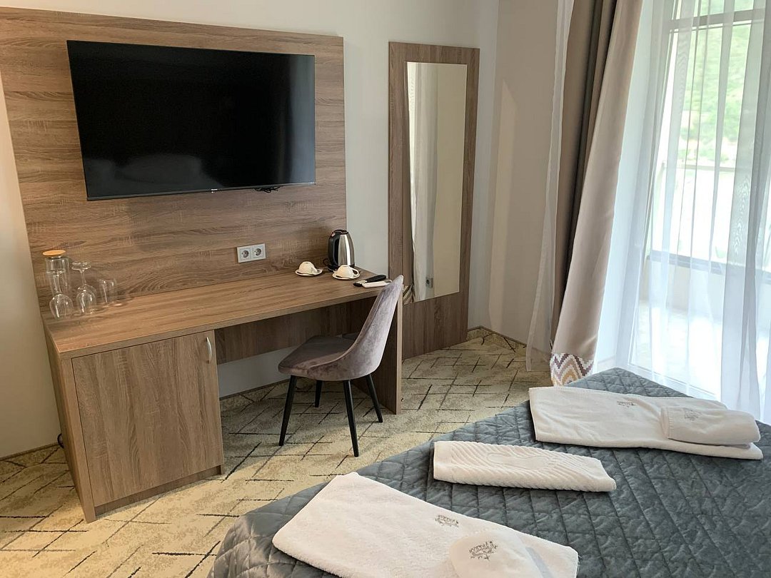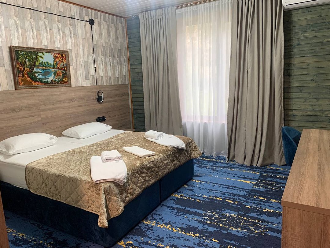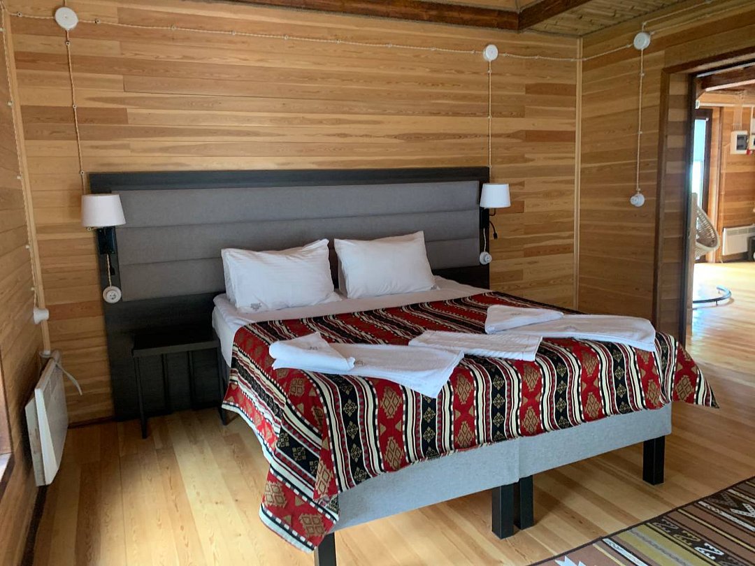 Отель предлагает своим гостям уютные номера и домики различных категорий, оборудованные всем необходимым для комфортного проживания. Современные удобства, такие как бесплатный интернет, кондиционеры и телевизоры, создают идеальные условия для отдыха. Из окон открываются захватывающие виды на горные вершины и бурную реку, чьи звуки сливаются в мелодичный фон, способствующий полному расслаблению.