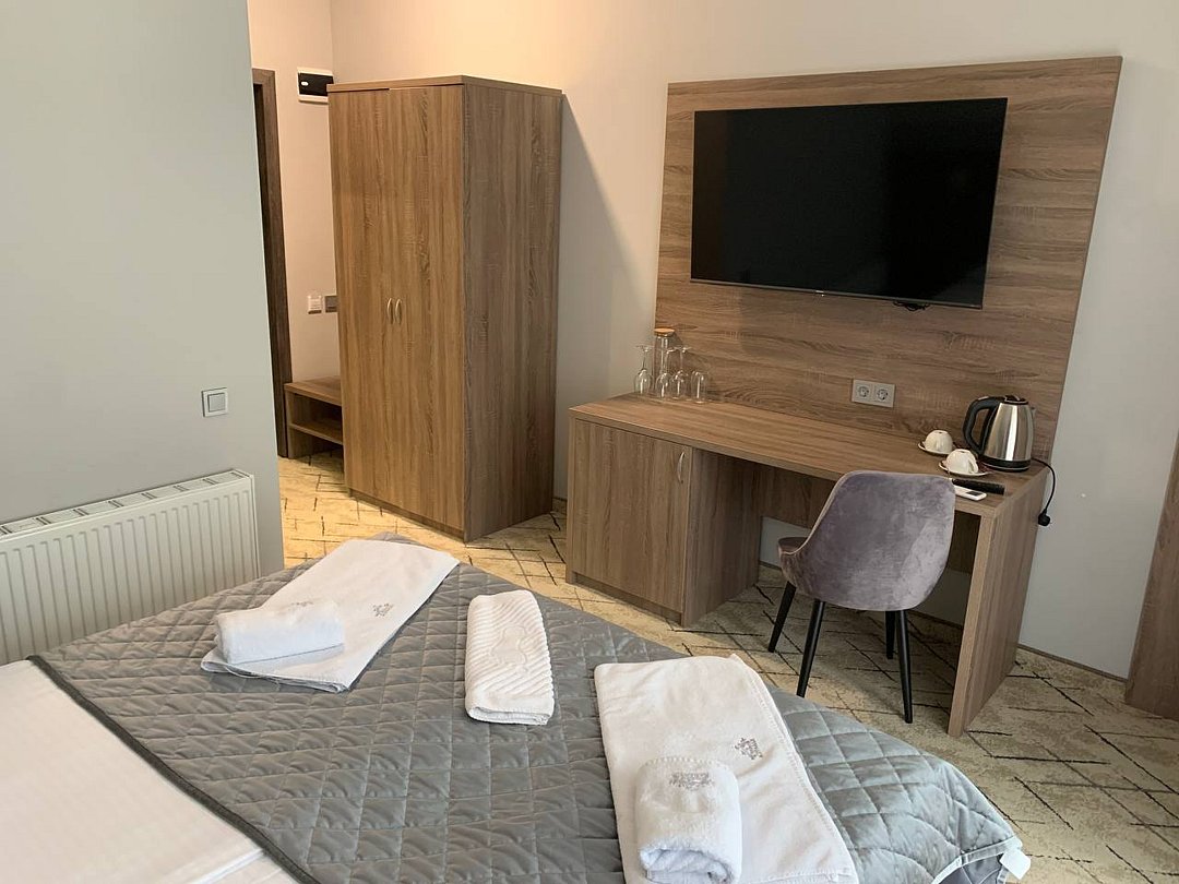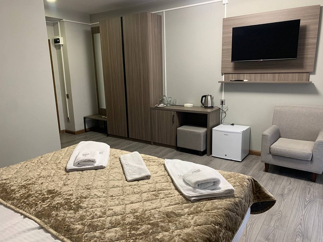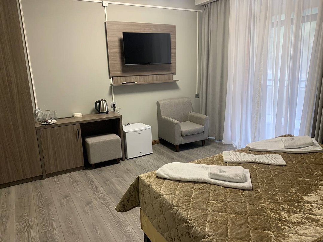 Улучшенный однокомнатный номер с двуспальной кроватью и балконом.