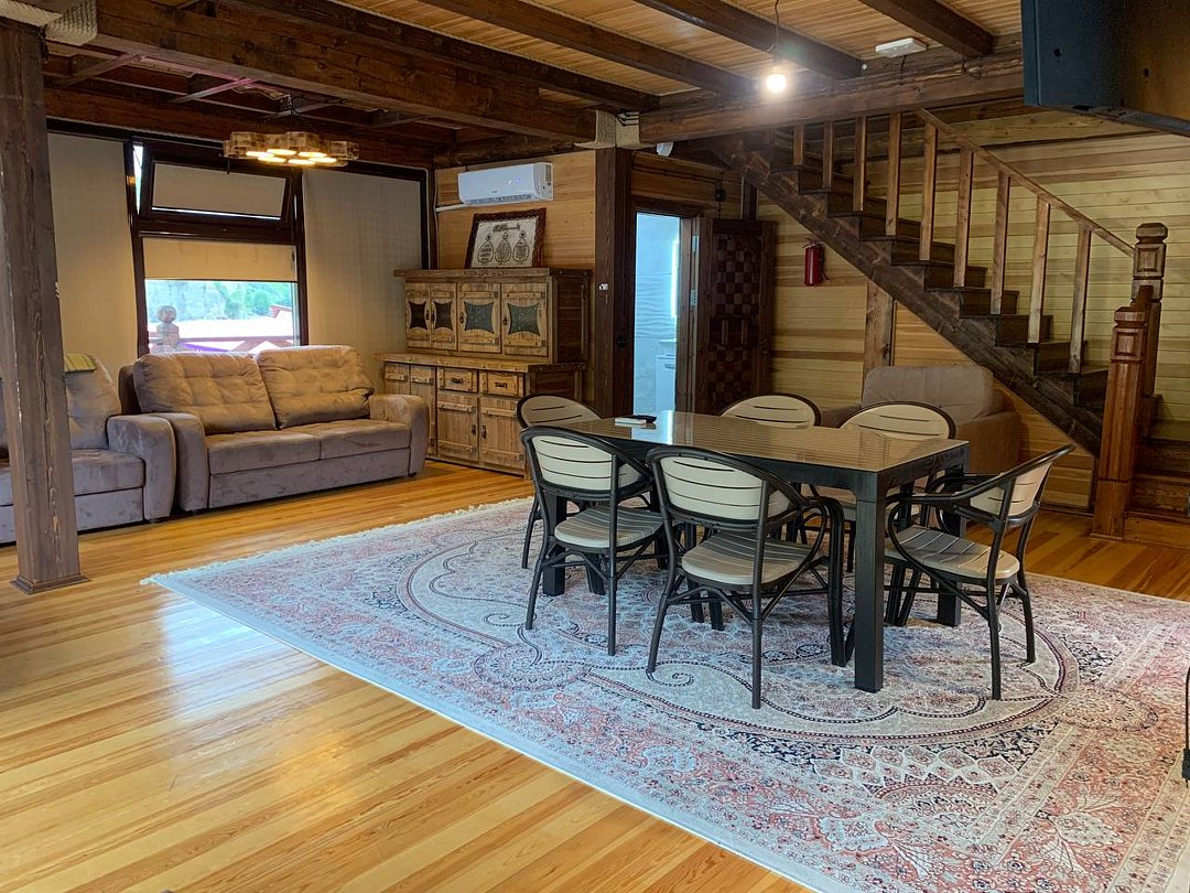 Просторный оформленный в национальном стиле трехкомнатный коттедж с двумя спальнями с двуспальными кроватями и гостиной с двумя двухместными раскладными диванами. С террасой.