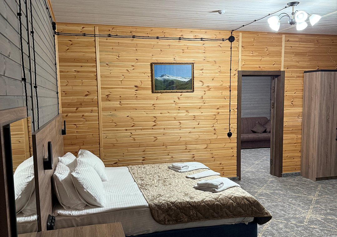 Просторный двухкомнатный номер в отдельном здании с двуспальной кроватью в спальне и раскладным креслом в гостиной. С террасой.