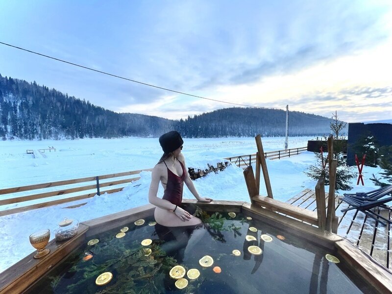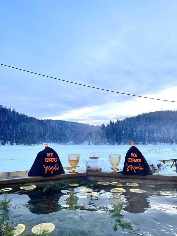 Классическая баня и экзотический чан с горячей водой и натуральными ароматизаторами.
