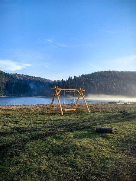 На территории также есть качели, беседка, бан, чан, прокат сапов и велосипедов