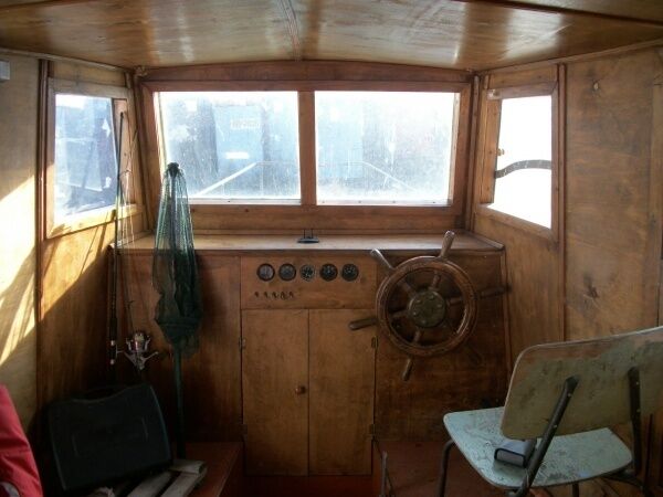Катер отделан под дерево. Теплый и уютный. Два полноценных спальных места. Возможно раскладка спальника до трех-четырех мест