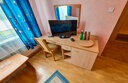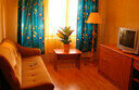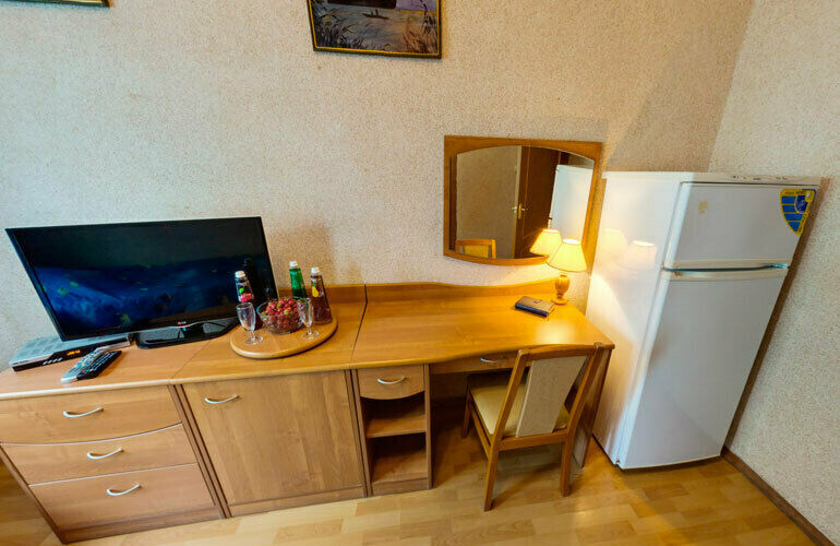Все номера с удобствами, оснащены системой отопления, кондиционирования, местной телефонной связью, спутниковым TV, минисейфами, минибарами. Во всех номерах одна кровать двухспальная и две односпальных и мягкая раскладная мебель.