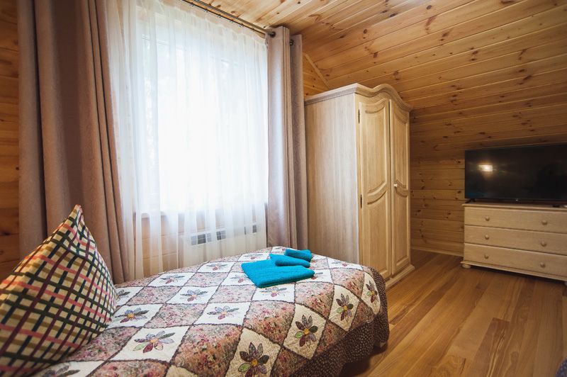 Трехэтажный коттедж. 1 этаж : столовая, бильярд, сауна, душевая, санузел и технические помещения. Проживание на 2 этаже - два 3-х местных номера, общая гостиная с ТВ и чайным столом, 2 санузла, маленький холодильник в каждом номере.