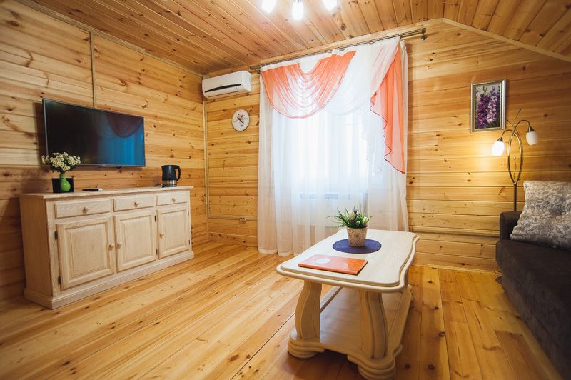 Трехэтажный коттедж. Проживание на 2 или 3 этаже - один 2 х-местный номер, общая гостиная с ТВ и чайным столом, 1 санузел, маленький холодильник в каждом номере.