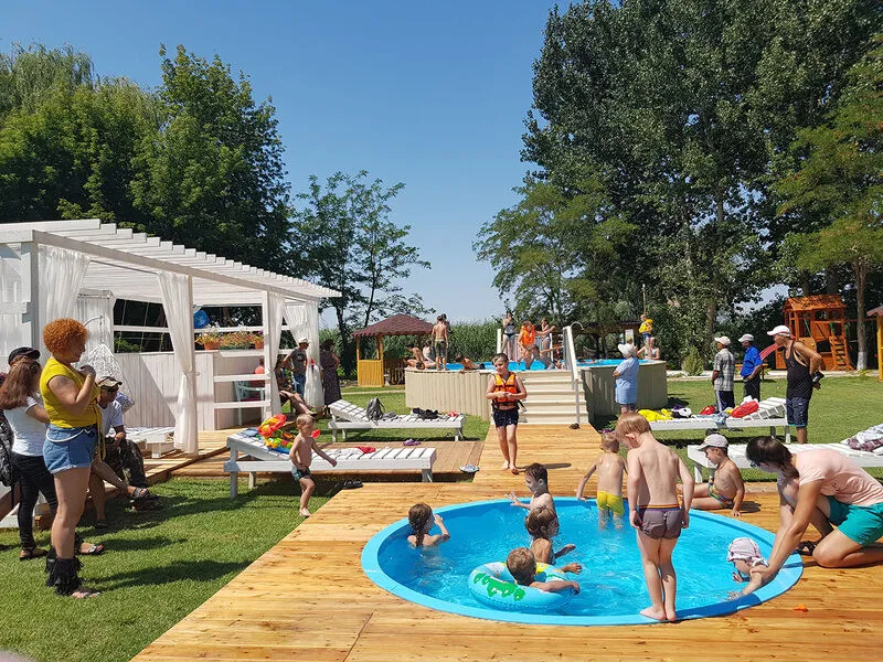 Тип бассейна: открытый бассейнРядом с бассейном: шезлонги, зонтикиРазмеры: 6 x 12 мПлощадь: 72 м²Глубина: 160 смДетский открытый бассейн