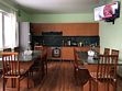 Кухня оборудована электротехникой (большой холодильник, электроплита с духовкой, микроволновая печь, посудомоечная машина) для самостоятельного приготовления пищи с залом на 15 посадочных мест, холл с бильярдом и большим телевизором.