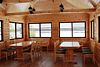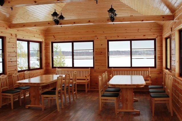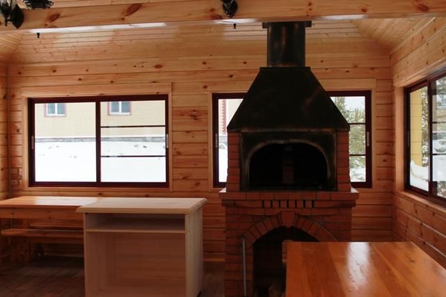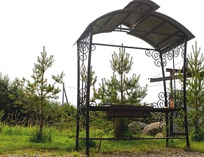 В беседке размещены шесть столов с комфортными стульями, вмещающие до тридцати пяти человек, а также оборудована печью для барбекю и коптильней. Это пространство идеально подходит для проведения семейных торжеств, свадебных регистраций и корпоративных мероприятий, создавая уютную и праздничную атмосферу.