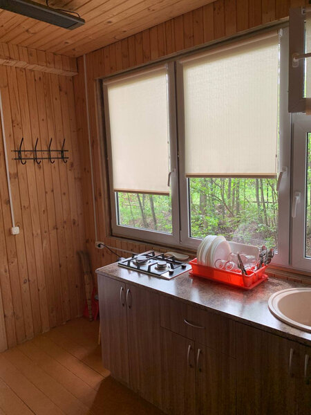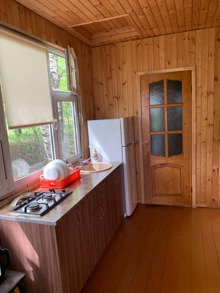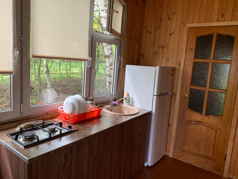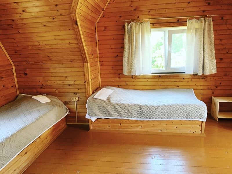 В доме: две односпальные кровати (85х200), стол, стулья, спутниковое TV, холодильник, чайник, посуда.