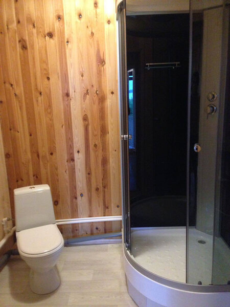 В отдельном помещение расположенным рядом с домом общий: туалет, душ, кухня.