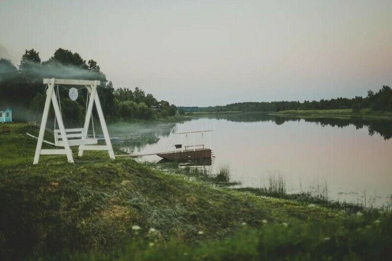 В тени волшебной березовой рощи стоит домик с большими окнами, а рядом протекает кристальная речка Медведица. За дверью дома вы погружаетесь в атмосферу дикой природы. Русская баня и дровяная купель с красивейшим видом у самой воды. Территория 17 гектар без заборов, почувствуете настоящий простор.