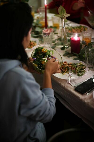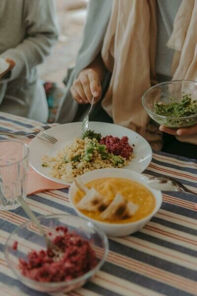 Тыквенный крем суп, теплый салат с булгуром, фунчоза с овощами, клюквенный напиток для иммунитета и конечно морковный пирог.