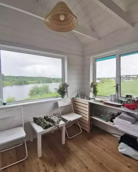 Русская баня и дровяная купель с красивейшим видом у самой воды.