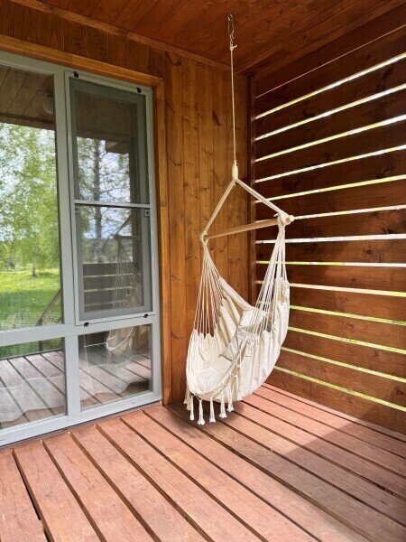 На самом берегу спокойной Медведицы стоит деревянный домик с крытой верандой и панорамным видом на реку. За дверью дома вы погружаетесь в атмосферу дикой природы.