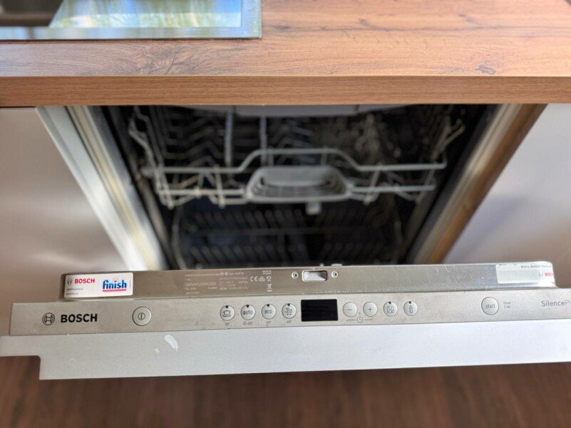 На кухне плита, раковина, холодильник и вся необходимая утварь (посуда, кастрюли, сковородки, соль, масло, перец, чай).