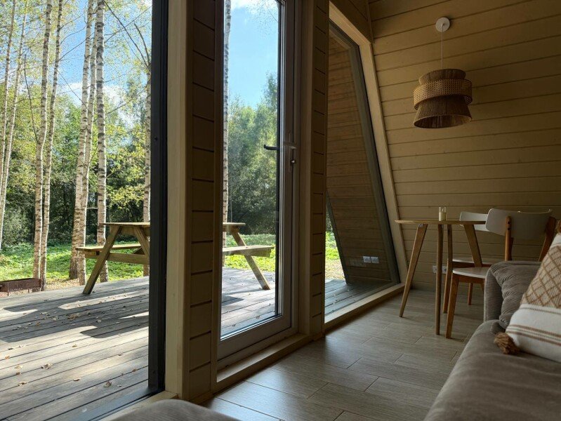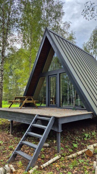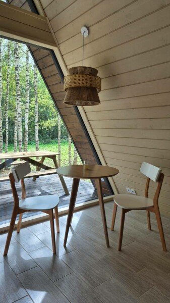 На выбор предлагается несколько домиков в скандинавском стиле с панорамными окнами с комфортной верандой. В наличии в каждом несколько спален, санузел, отдельная кухня. Предусмотрен набор полотенец и постельное белье.