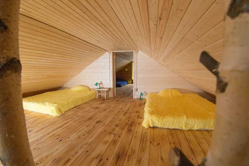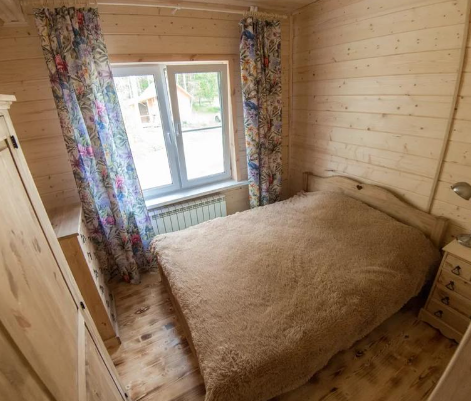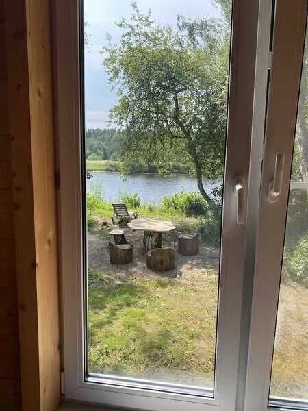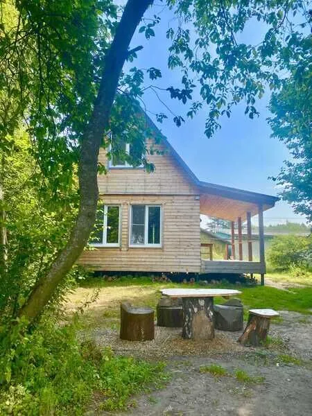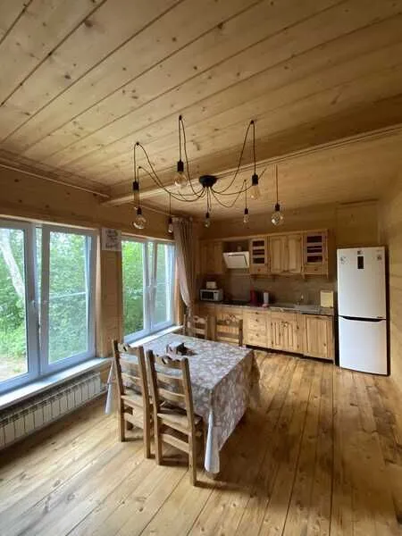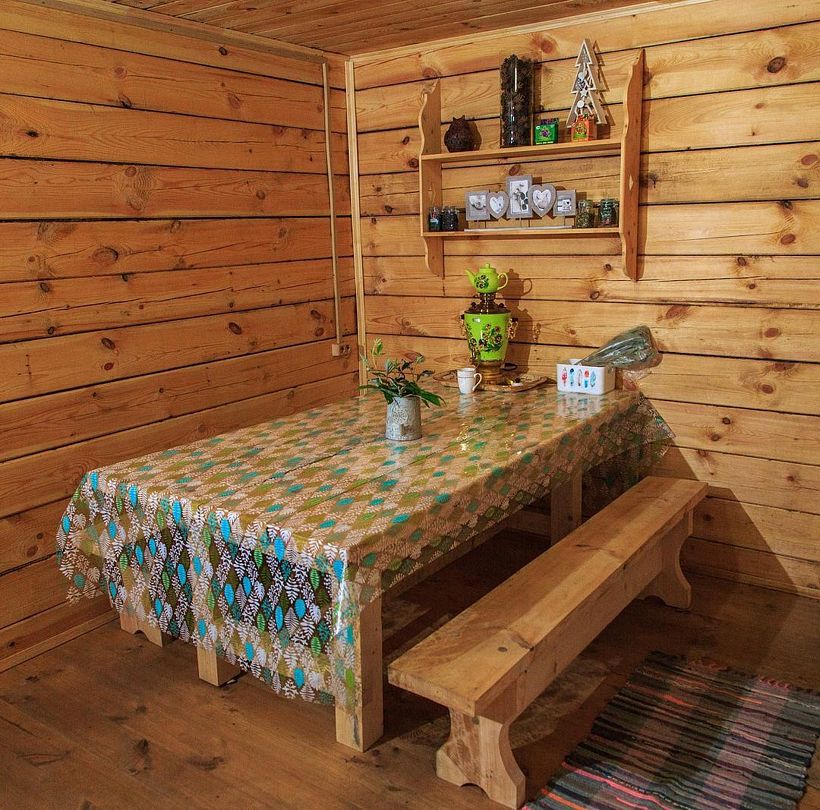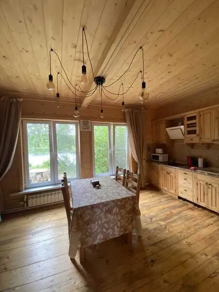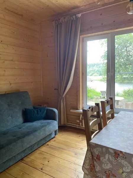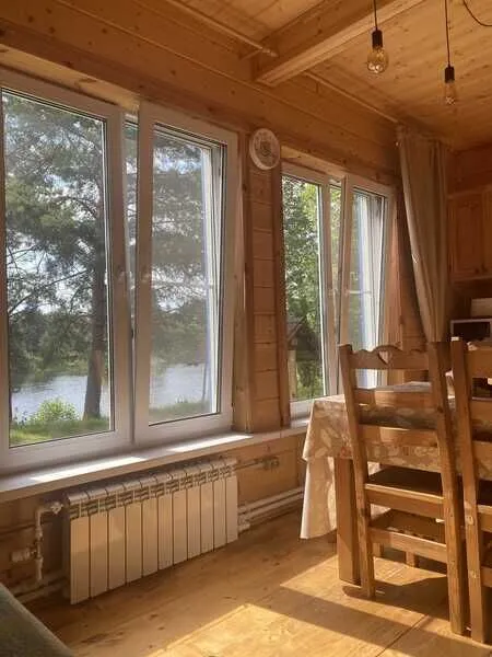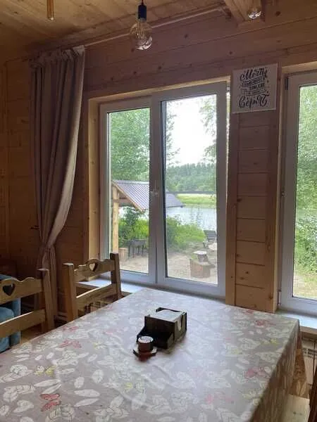 Внутри деревянная мебель и все удобства. Вокруг водная гладь и лес! Большая территория, расположенная в сосновом бору. Свежий воздух, тишина и первозданная природа. Русская баня у воды.