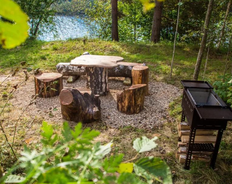На территории имеется бесплатная парковка, мангал, предоставляются принадлежности для барбекю, можно попариться в русской бани у воды, ловить рыбу, погулять по лесу и пособирать грибы. Есть собственный пляж.