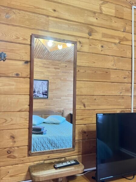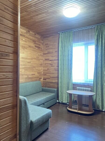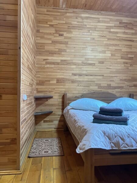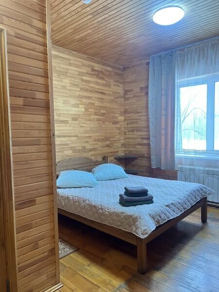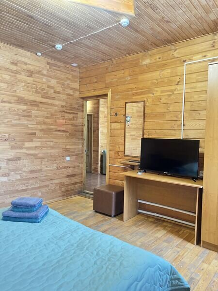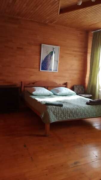 Однокомнатный номер (свежий ремонт) с двуспальной кроватью и собственной ванной комнатой с санузлом, в уютном двухэтажном доме с видом на лес и озеро.На первом этаже расположены 12 номеров "Стандарт" каждый со своей ванной комнатой, а также общая обеденная зона из которой есть выход на летнюю террасу и кухня. На втором этаже расположены 10 номеров "Стандарт" и 2 номера "Семейный" каждый со своей ванной комнатой, а также общая зона отдыха с детским уголком а также возможностью поиграть в биллиард и настольный теннис. Отдых в тишине вдали от городской суеты.