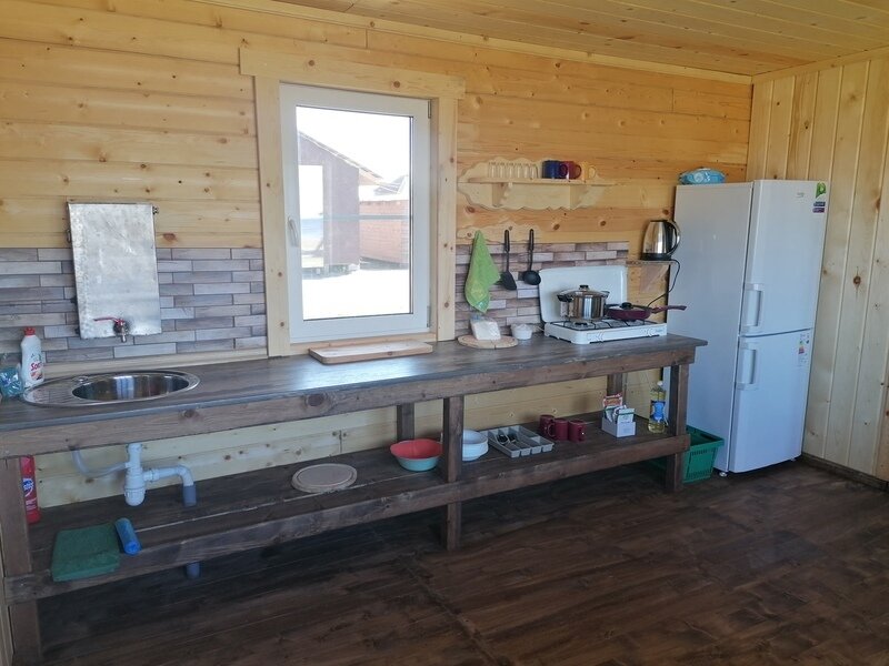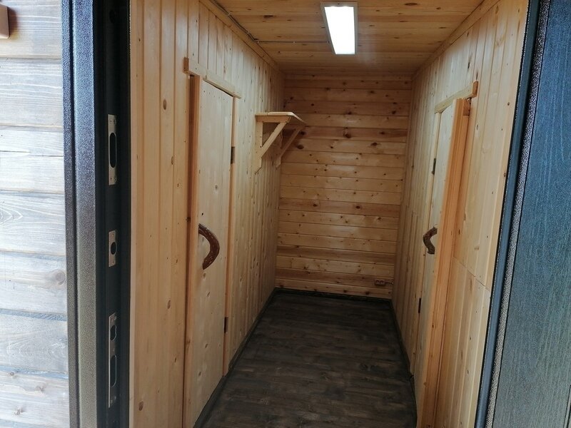 Туалет — отдельное теплое помещение в 10 шагах от домиков.