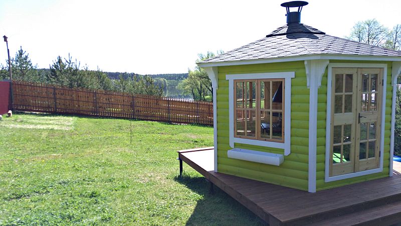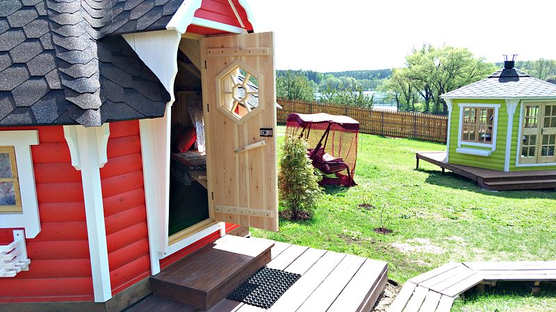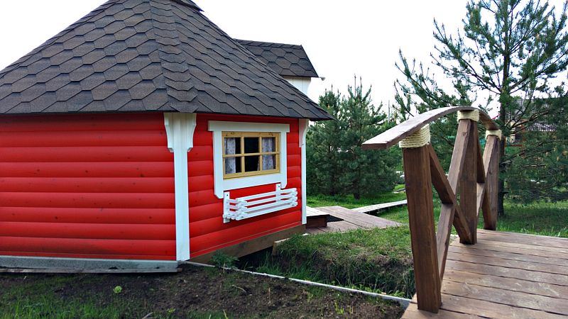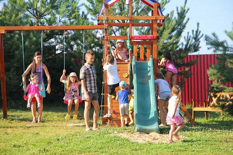 На территории гостевого комплекса расположена обустроенная территория с детской площадкой, где детишки могут проводить свободное время, а пока ваши дети активно играют на площадке, вы можете расположиться на открытой площадке с беседками.