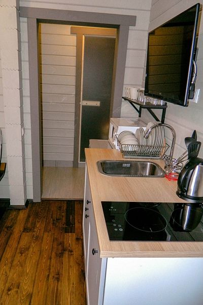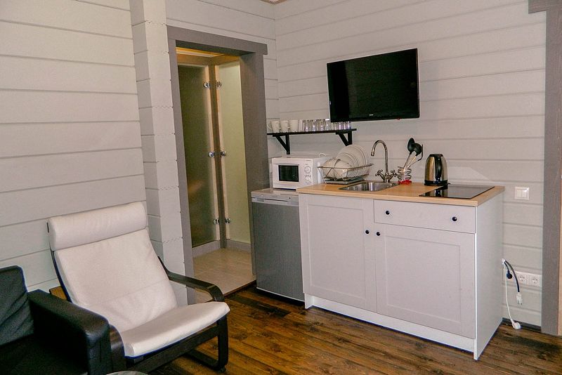 - уютные деревянные дома, оборудованные всем необходимым для комфортного проживания;