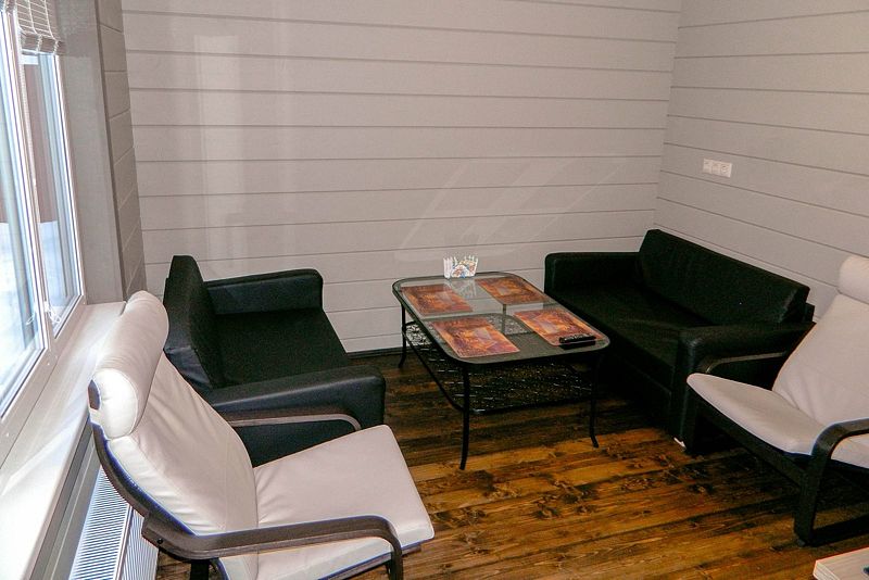 В коттедже площадью 84 м2 может разместиться 7 гостей.
