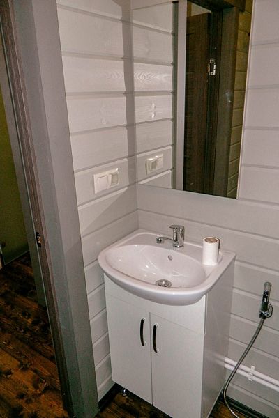 - туалетная комната: душевая кабина, гигиенический душ, унитаз, раковина, зеркало, фен, стиральная машина, сушка для белья, косметические принадлежности (мыло, шампунь, гель для душа, зубная паста и зубная щетка, индивидуальные тапочки);