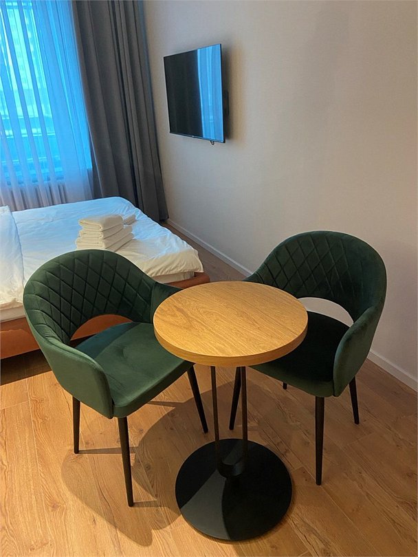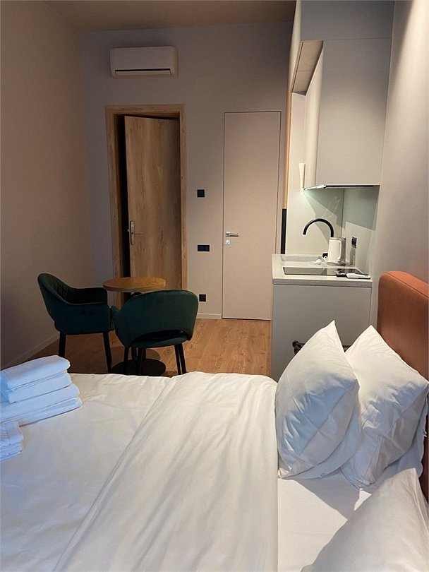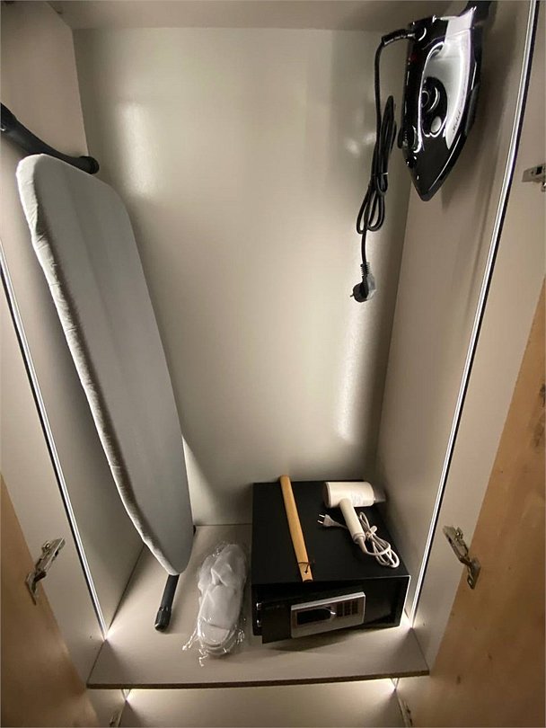 Wi-Fi, холодильник, кондиционер, фен, электронные замки, утюг, банные принадлежности, тапочки, двуспальная кровать, стулья, шкаф для одежды, унитаз, раковина, душ, стол, тумба, туалетные средства, мини-холодильник, телевизор со Smart TV, мылоВ аппартаментах