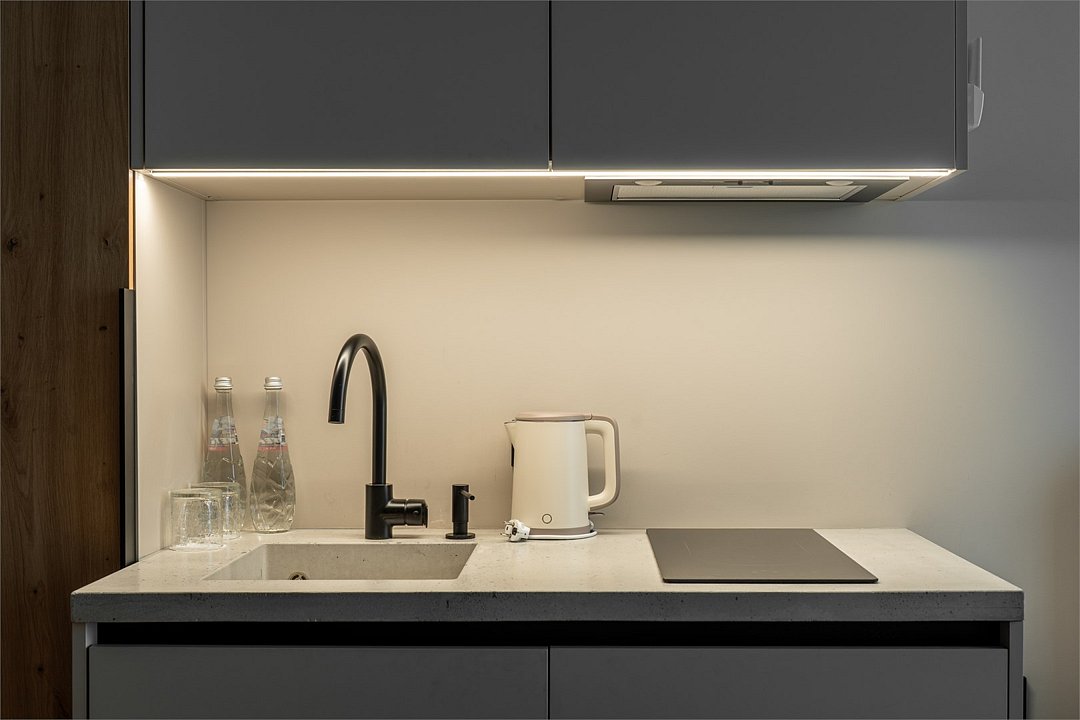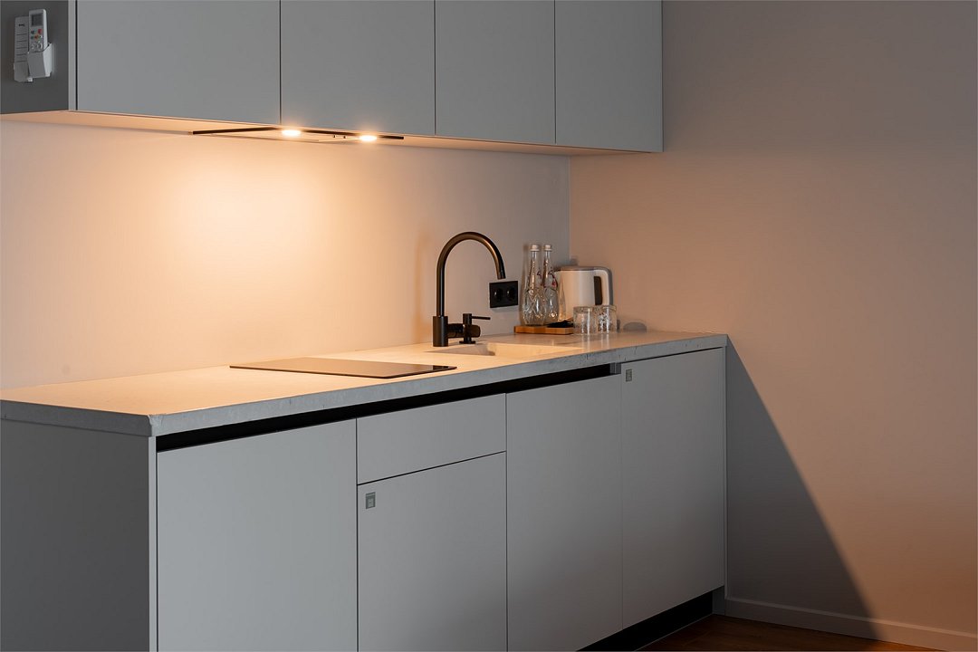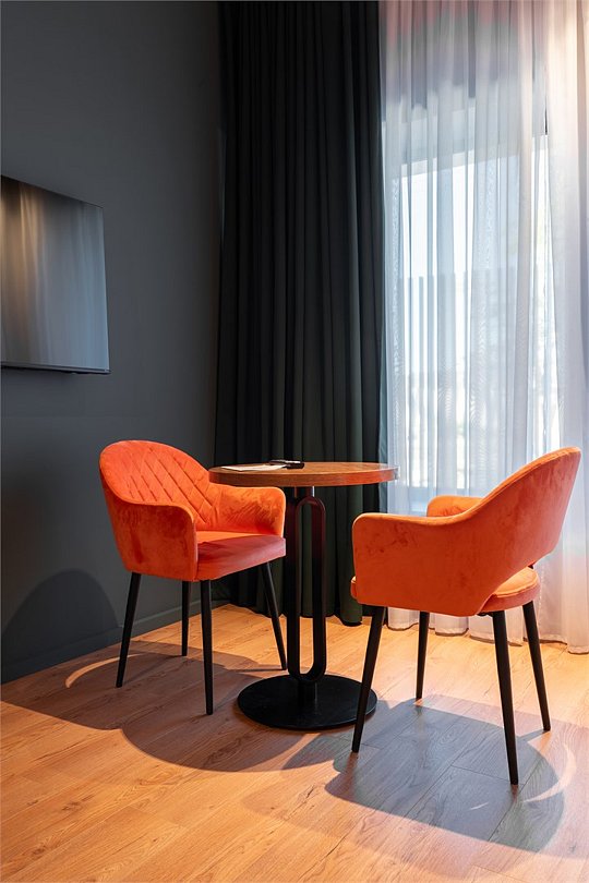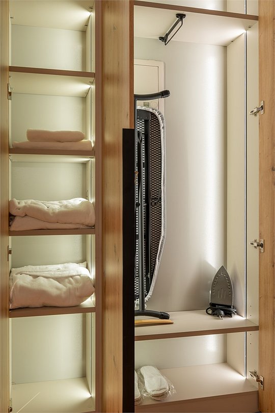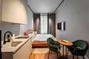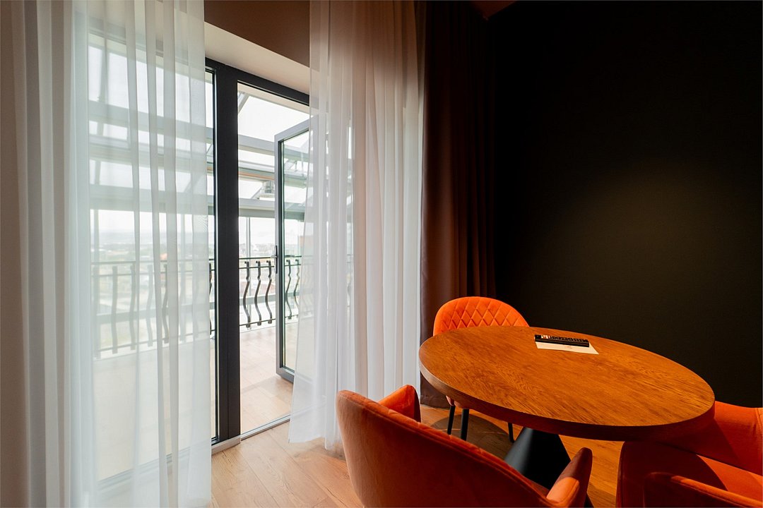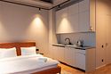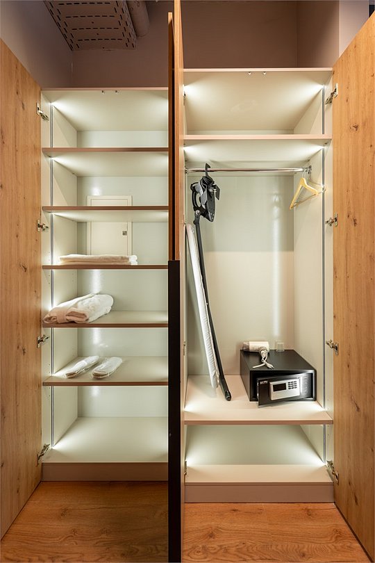 Wi-Fi, кондиционер, фен, электронные замки, плита для приготовления пищи, утюг, банные полотенца, тапочки, гигиенические средства, косметические средства, двуспальная кровать, стулья, шкаф для одежды, зеркало, сейф, чайник, унитаз, раковина, обеденная зона, отопление, душ, окна выходят в атриум отеля, кухонная посуда, стаканы, кухонная утварь, столовые приборы, стол, мини-кухня, телевизор со Smart TV, номер для некурящих, мыло, затемняющая штораВ апартаментах
