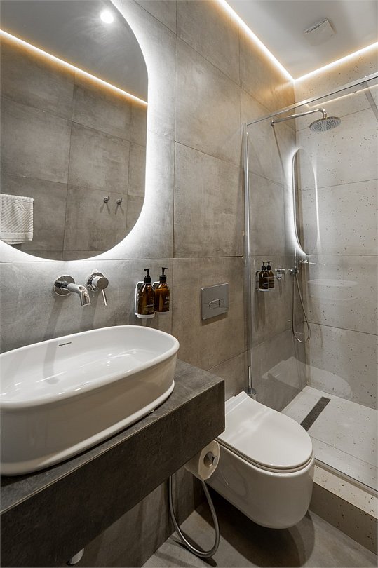Wi-Fi, холодильник, кондиционер, фен, электронные замки, утюг, банные полотенца, тапочки, гигиенические средства, косметические средства, двуспальная кровать, стулья, шкаф для одежды, унитаз, раковина, душ, стол, тумба, туалетные средства, мини-холодильник, телевизор со Smart TV, мылоВ апартаментах