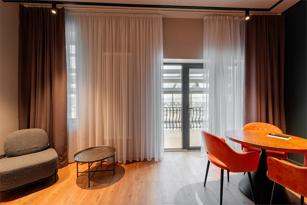 Приглашаем вас погрузиться в атмосферу утонченного вкуса и гармонии. Дизайнерский Апарт-Отель «Аура» в Каспийске это особенное пространство, вдохновленное современными тенденциями искусства. Здесь каждый гость сможет ощутить сочетание элегантности, индивидуальности и максимального комфорта. Интерьеры отеля украшены картинами талантливых современных художников, выполненных в традициях восточной культуры. Каждая картина — это произведение искусства, которое можно полюбоваться и даже приобрести себе домой. Гастрономическое удовольствие ждет вас в нашем уютном ресторане на первом этаже. Superior - это двухместные апартаменты в которых есть все необходимое для комфортного отдыха: - тапочки - косметические средства для ухода за собой - полотенца - Smart TV - кухня, оснащенная всем необходимым для самостоятельного приготовленияУслуги и удобства