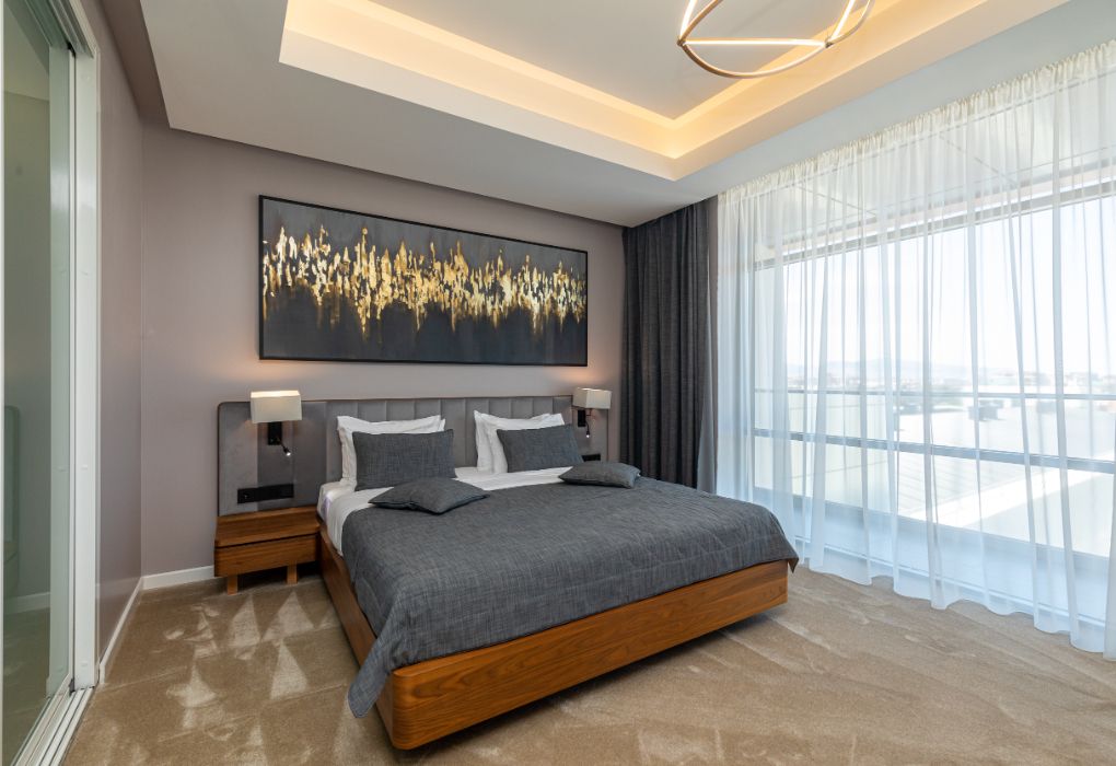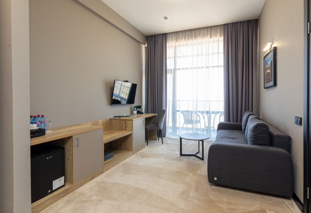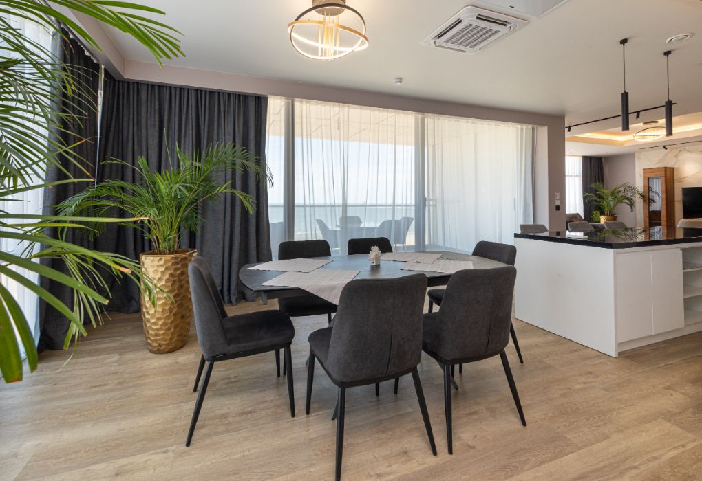 расположен на последнем этаже, с панорамным видом из окна на море, в номере две лоджии, одна из которых помимо комплекта стола и кресел оснащена шезлонгамиУслуги и удобства