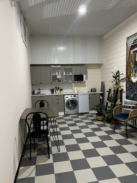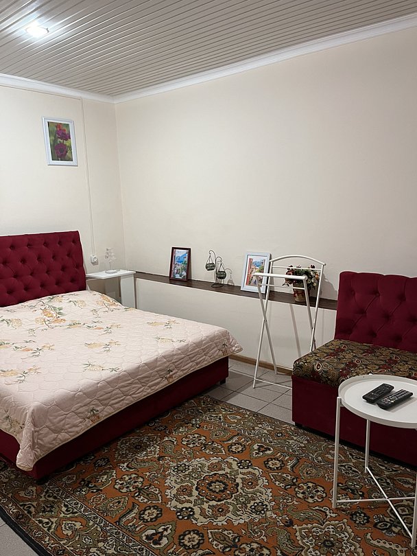 На территории вы найдёте уютные двухместные номера с удобной мебелью, телевизором, феном, ванной комнатой со стиральной машиной и набором полотенец. На уютном дворике установлен мангал и чайная зона. Парковка предоставляется за дополнительную плату. Гостям доступен бесплатный Wi-Fi и общая кухня с микроволновой печью и чайником.