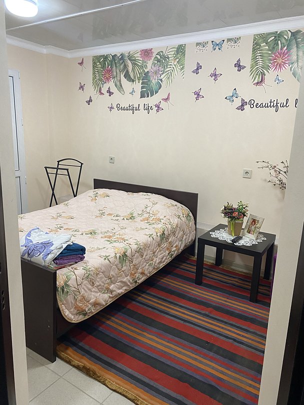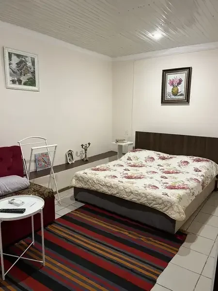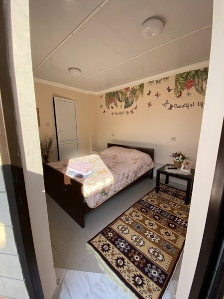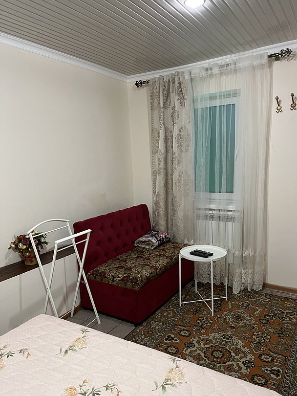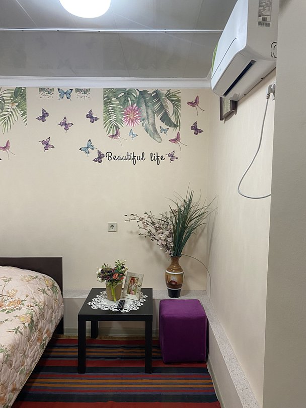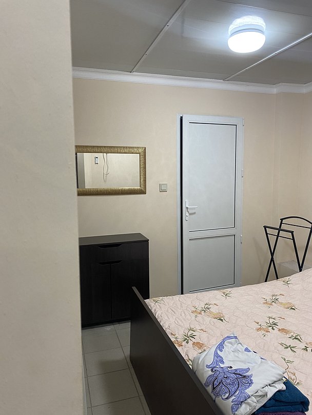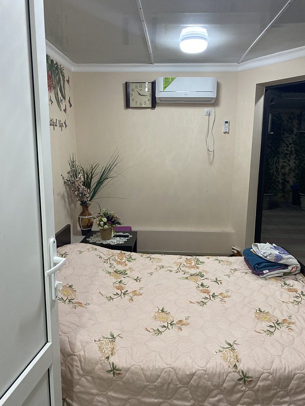 Однокомнатный номер подходит для одного или двух гостей. В номере есть собственная душевая, туалет во дворе, в номере есть кондиционер, прикроватная тумбочка с светильником, пуфик.