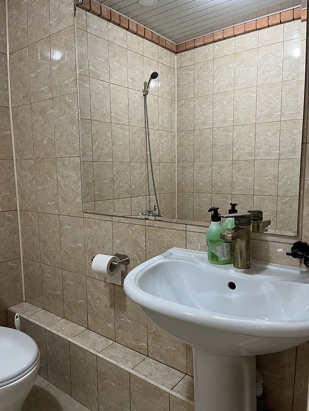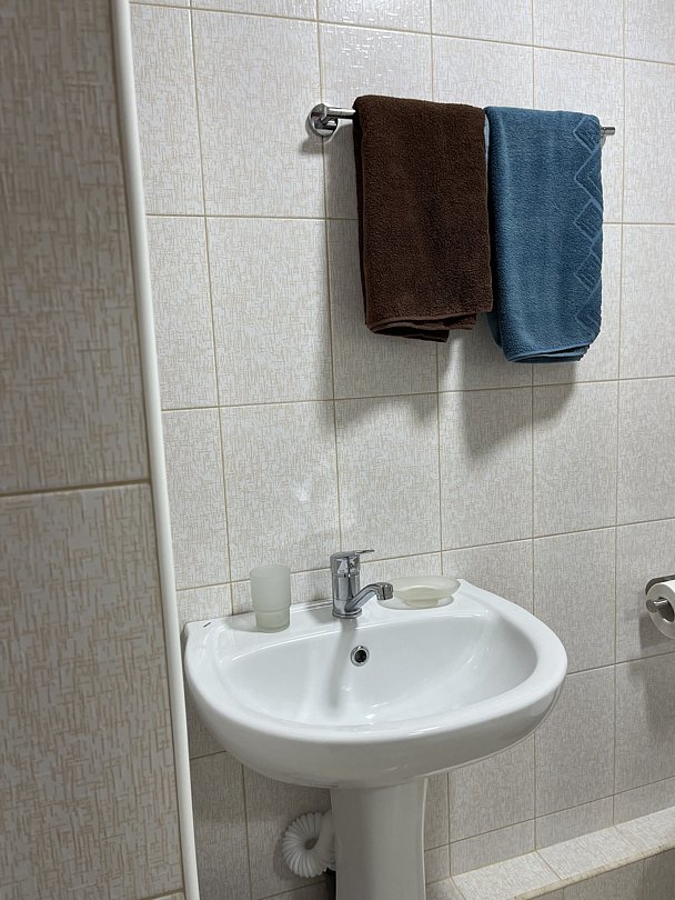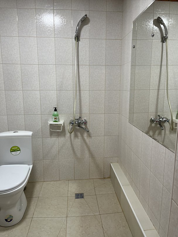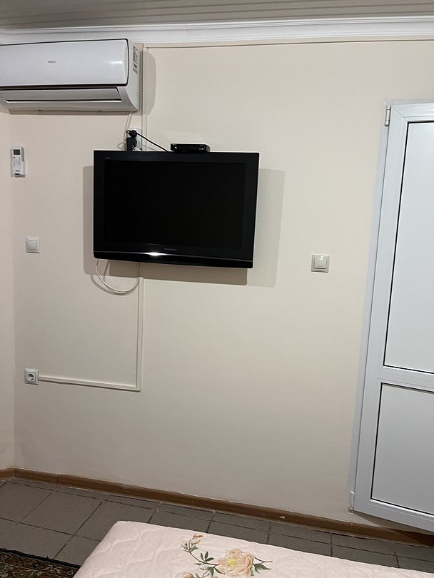 Номер стандарт двухместный, в номере находится санузел и душевая, имеется кондиционер, телевизор, прикроватная тумбочка с светильником, диванчик и платяной шкаф.