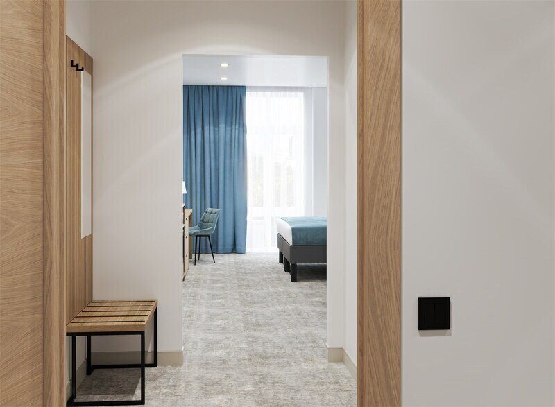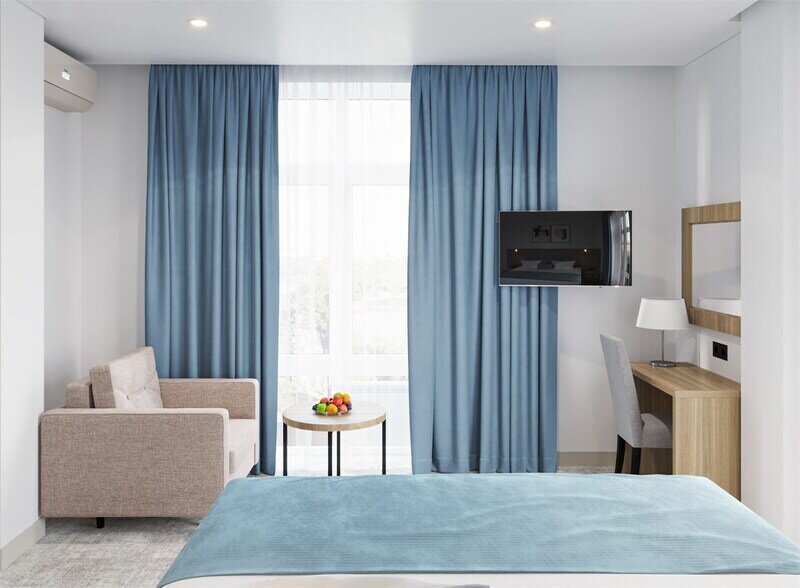 Интерьеры отеля оформлены в современном стиле и мебелью с изысканным дизайном. Каждый номер сделан с учетом вашего комфорта и удовлетворения всех ваших потребностей. Мебель выбрана с особым вниманием к деталям и стилю, чтобы создать атмосферу уюта и роскоши.