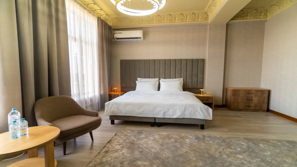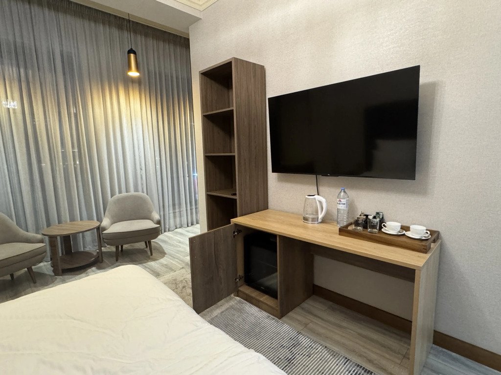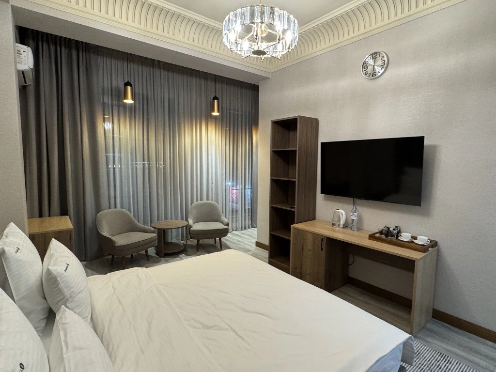 При отеле есть ресторан, в котором кавказская и европейская кухни сочетаются с живой музыкой.