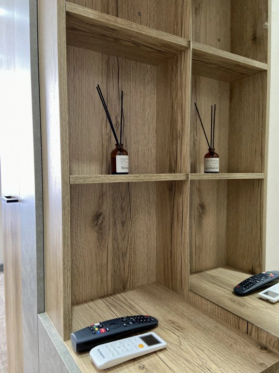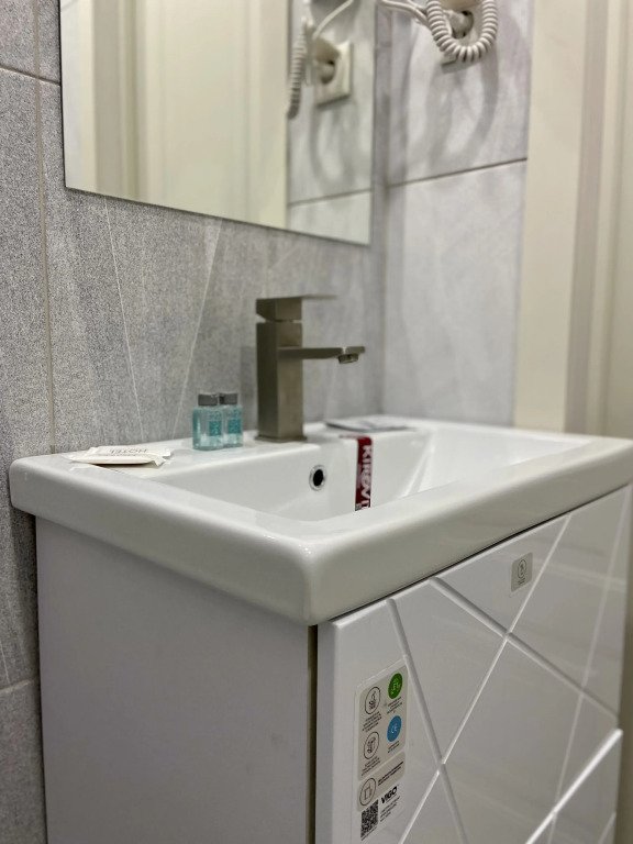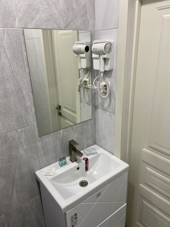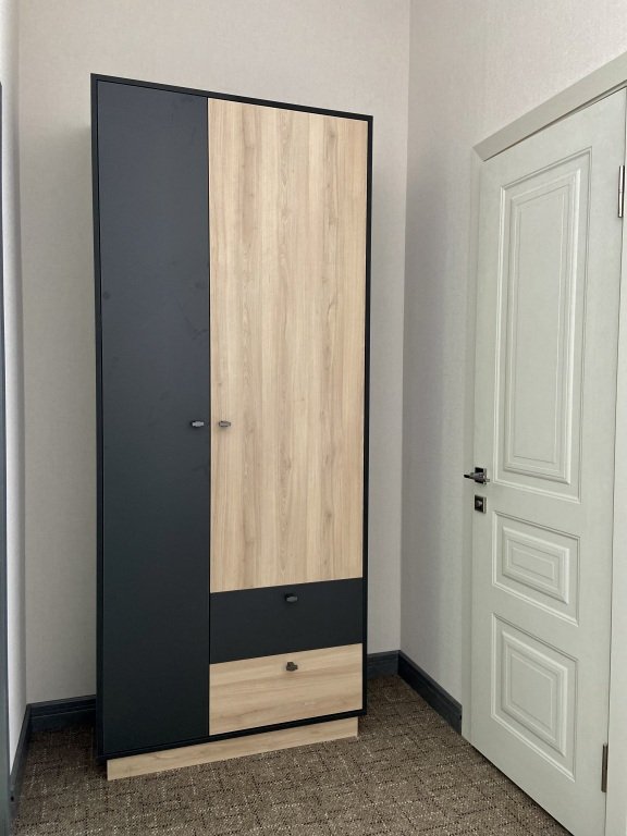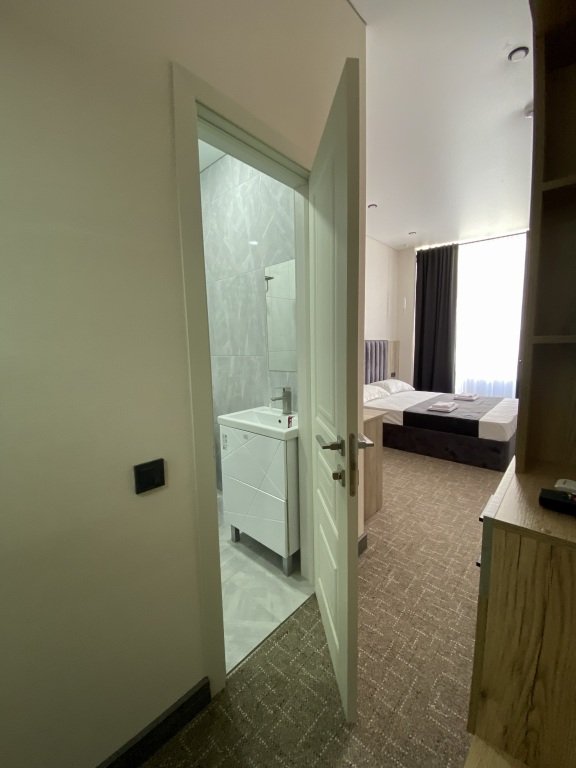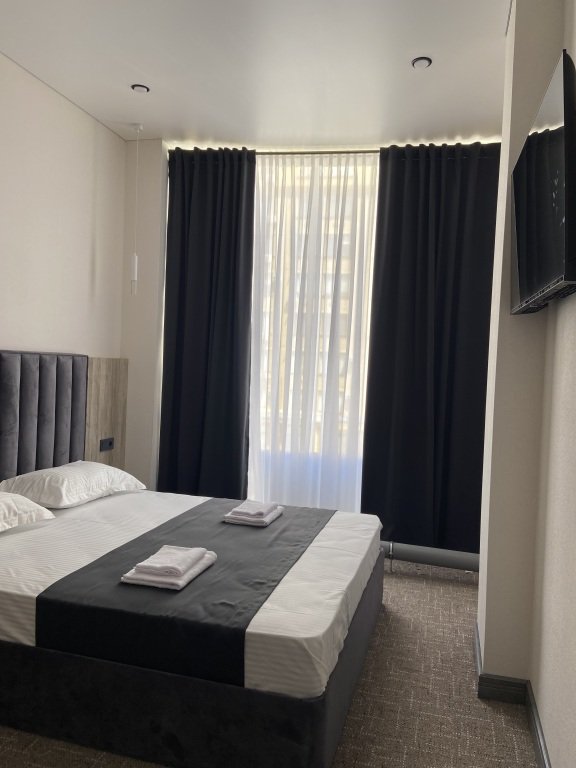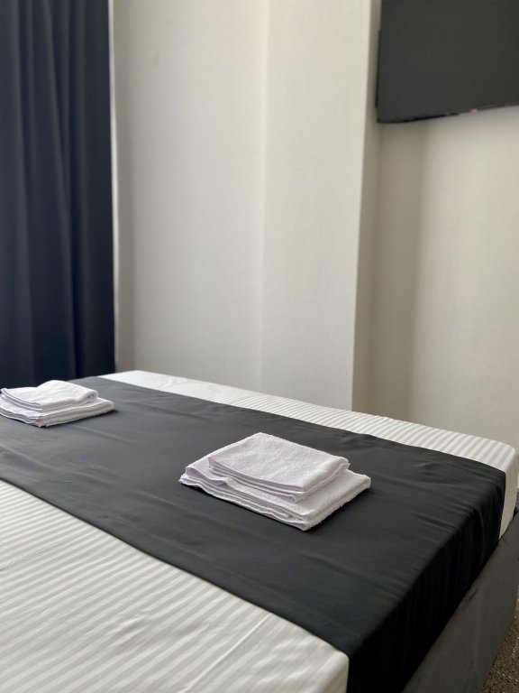 Во всех номерах — своя ванная комната, фен, туалетные принадлежности, холодильник, телевизор, стол, стул, пуфик, шкаф, чай, кофе, чайник, стаканы, кондиционер.